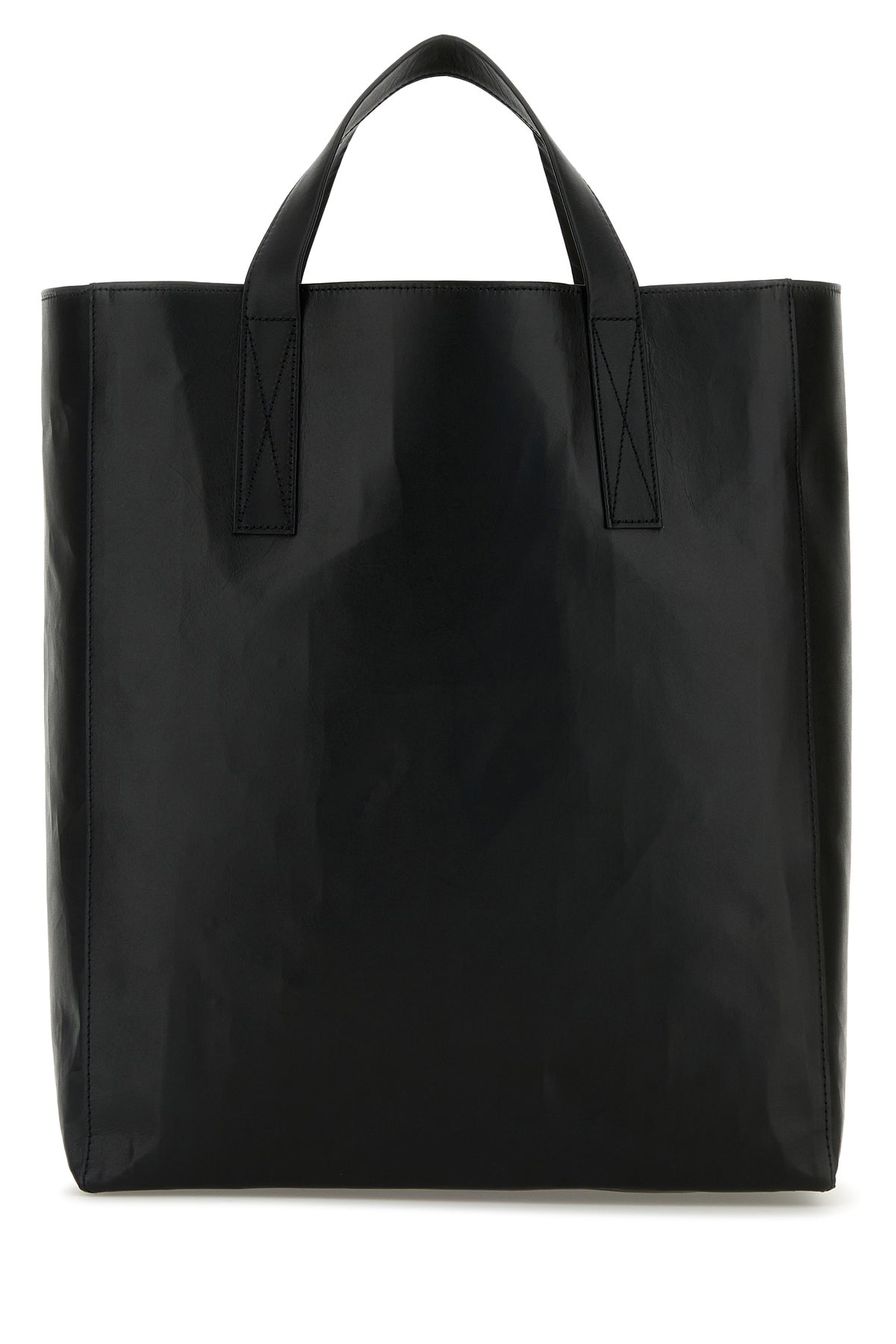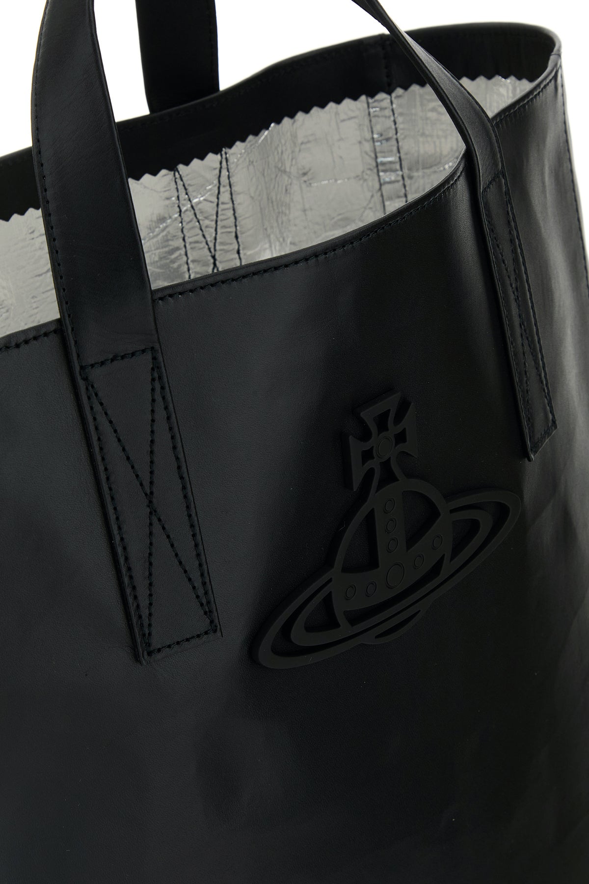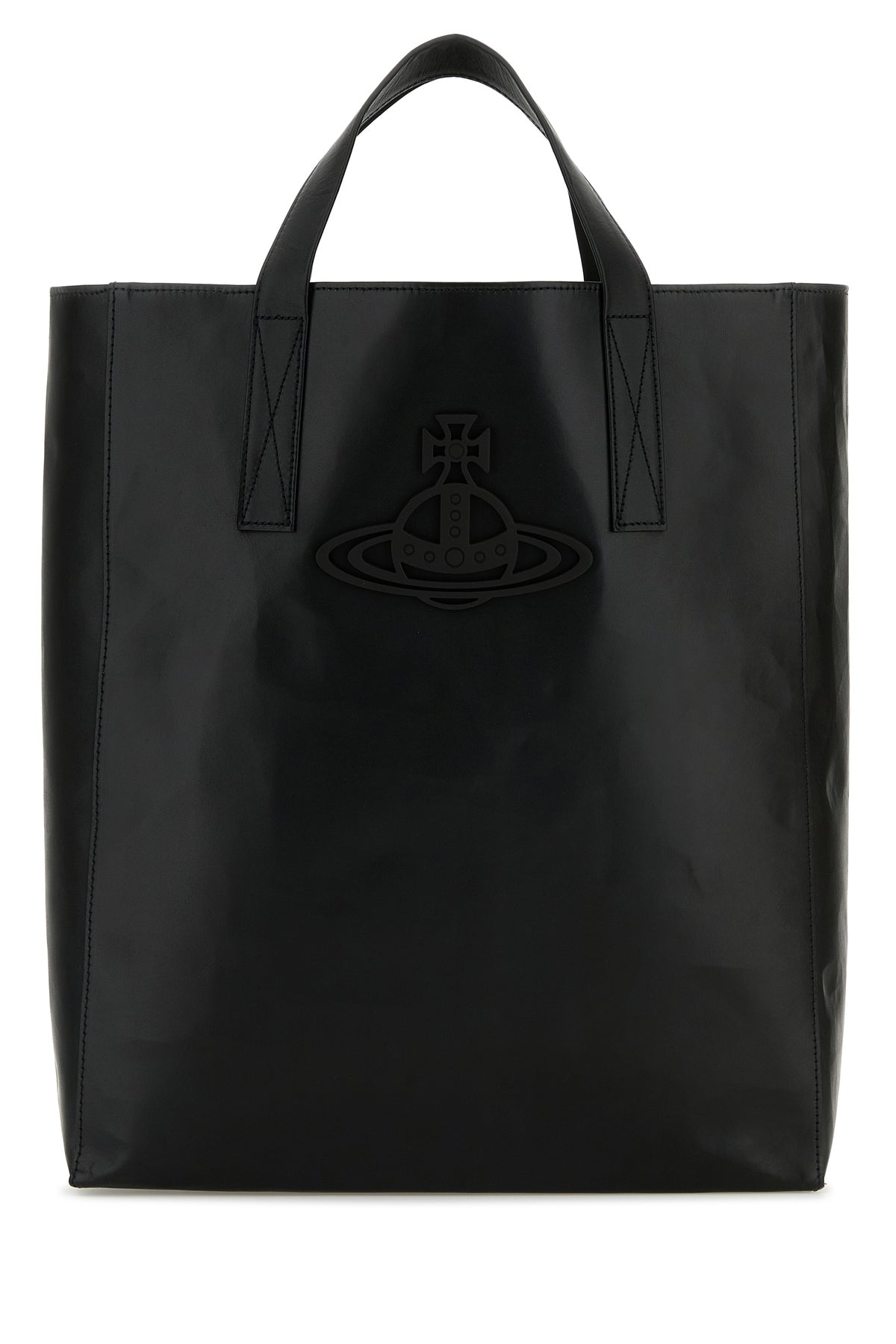Borsa shopping realizzata in pelle liscia arricchita da dettaglio metallico Orb sulla parte frontale.
