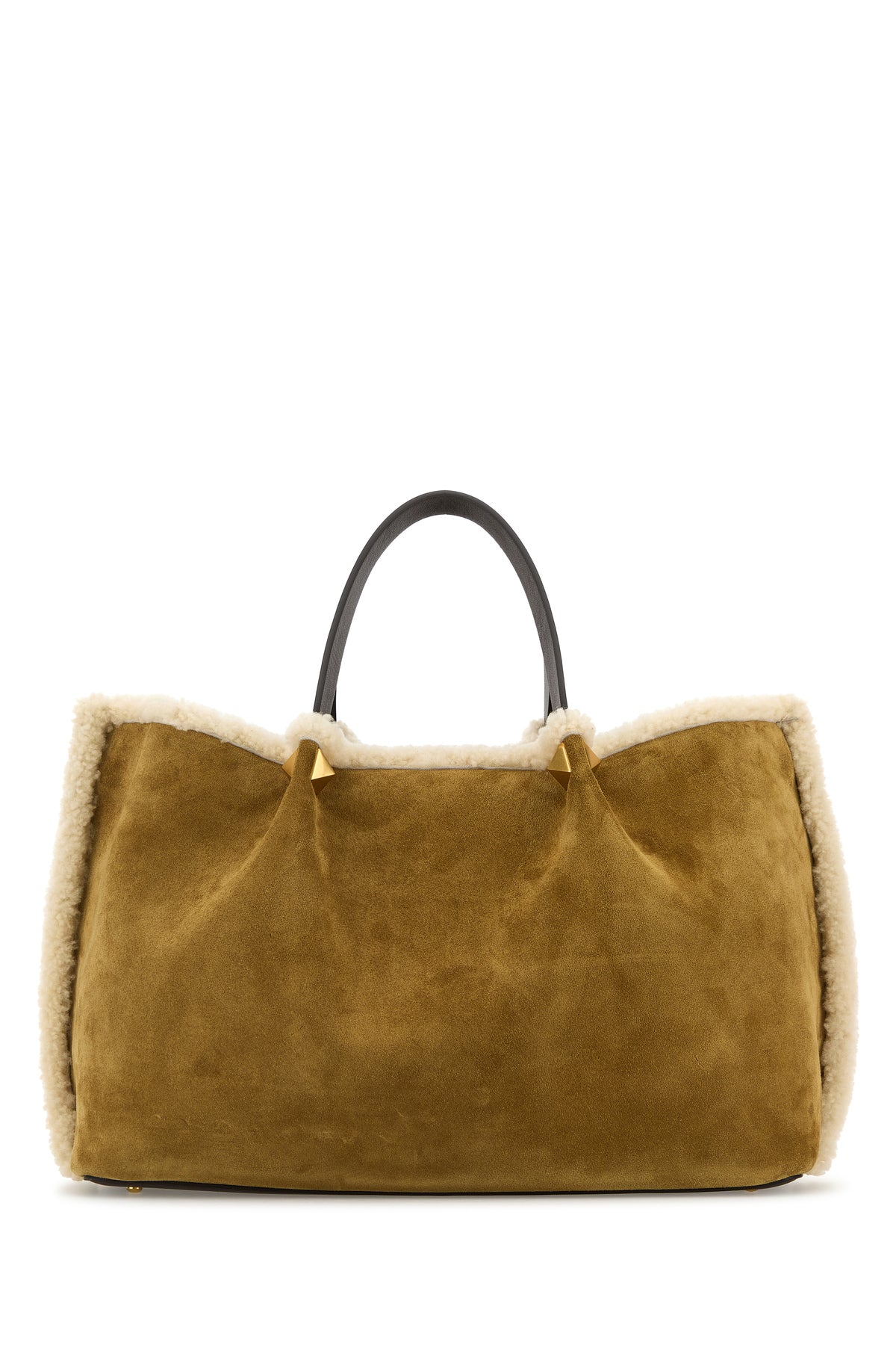 Borsa shopping VLogo Signature in pelle scamosciata senape