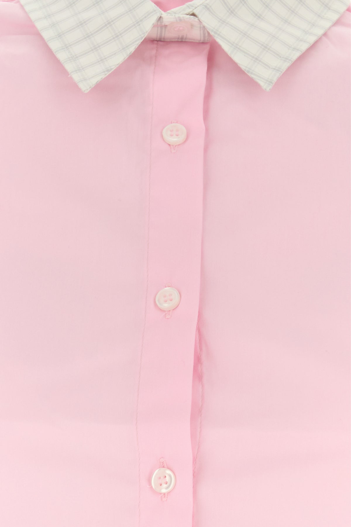 Camicia realizzata in popeline stretch caratterizzata da ricamo a quadri sul colletto e sui polsini.