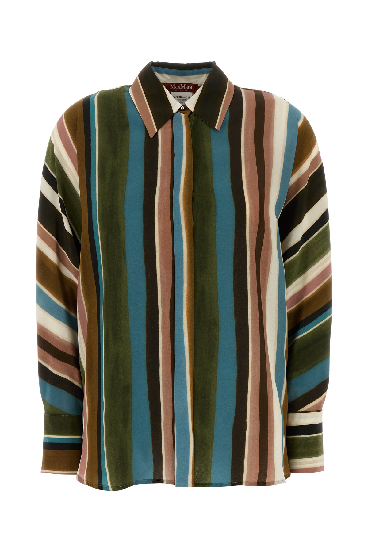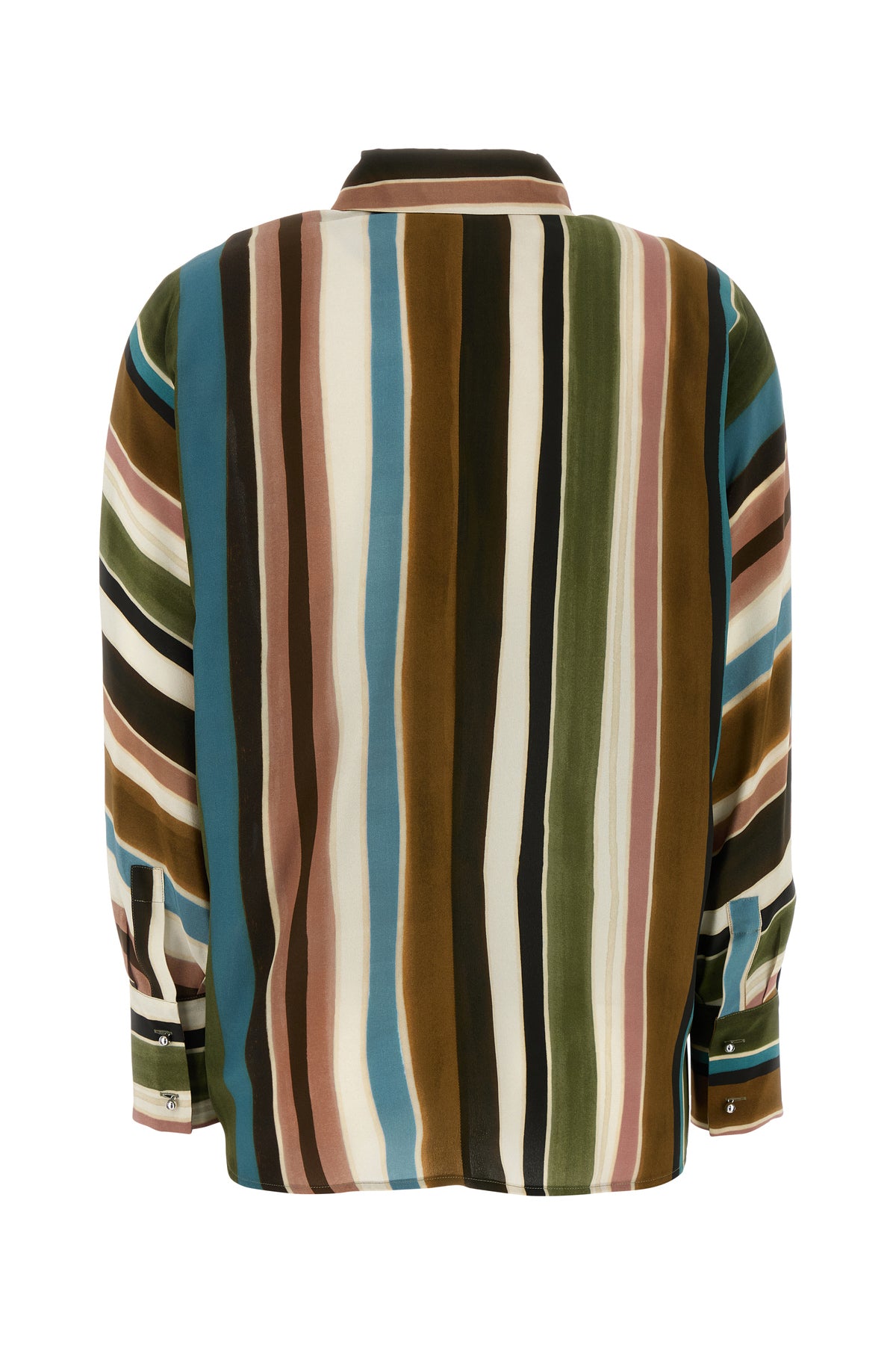 Camicia realizzata in pura seta caratterizzata da particolare ricamo a righe su tutta la superficie.