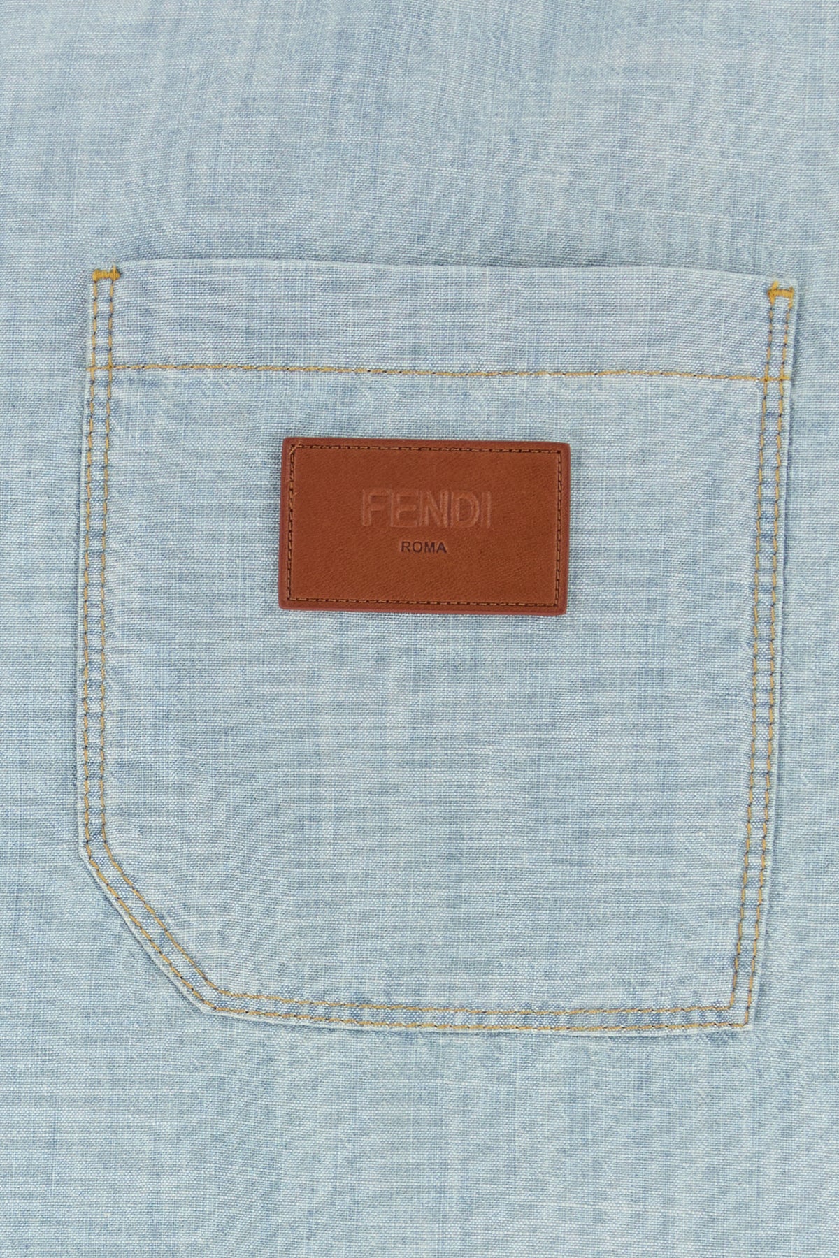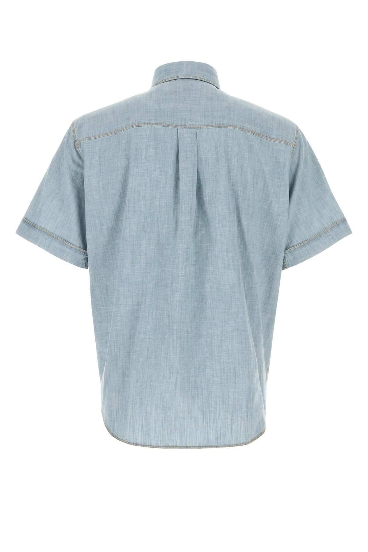 Camicia a maniche corte realizzata in chambray di puro cotone arricchite da etichetta logata a contrasto sul petto.