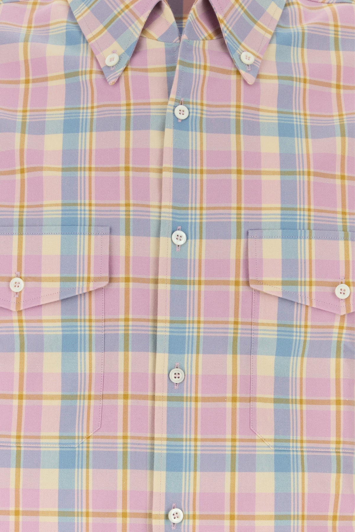 Camicia realizzata in puro cotone caratterizzata da ricamo a quadri su tutta la superficie arricchito da iconico triangolo in tessuto sul retro.