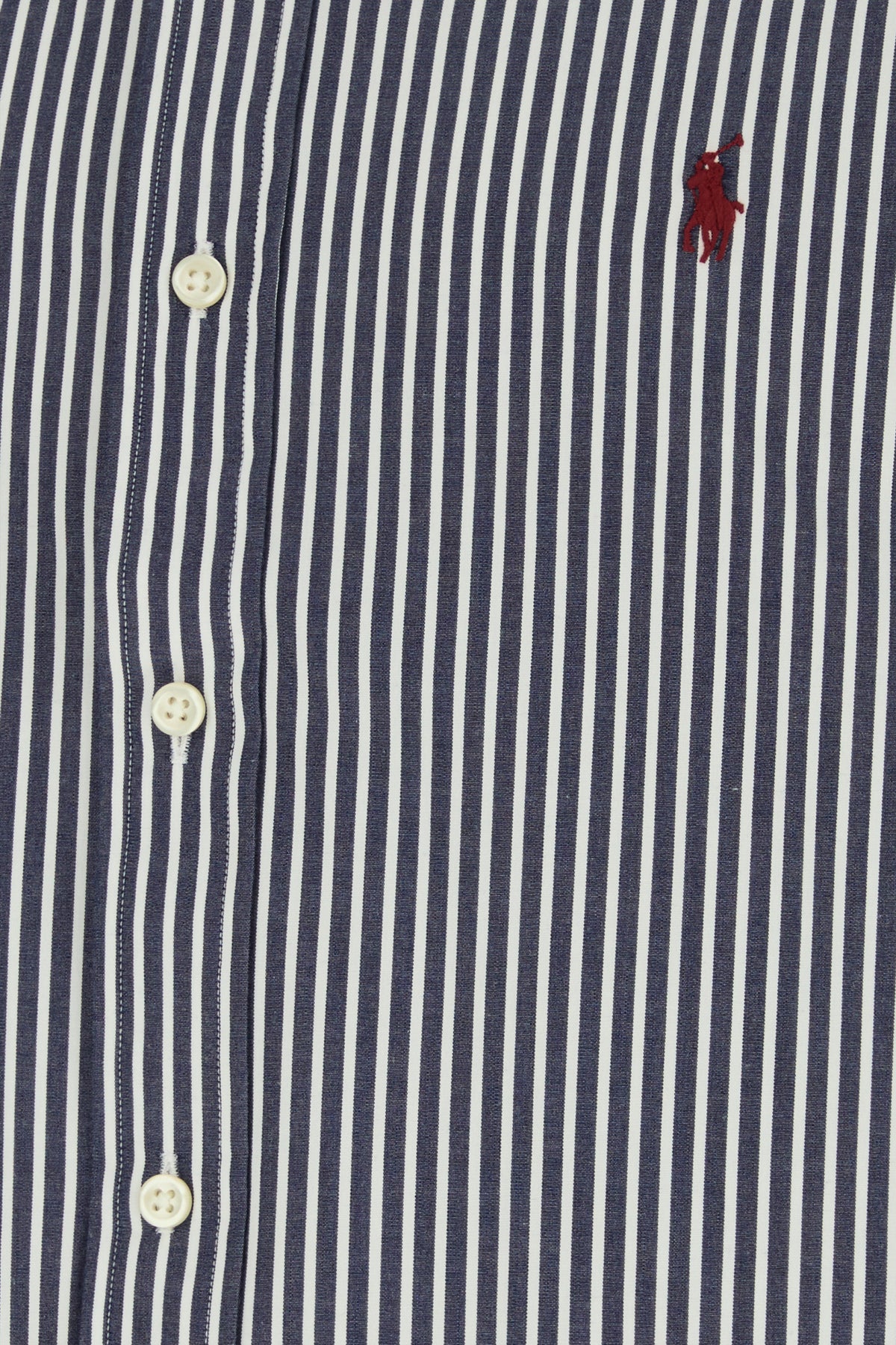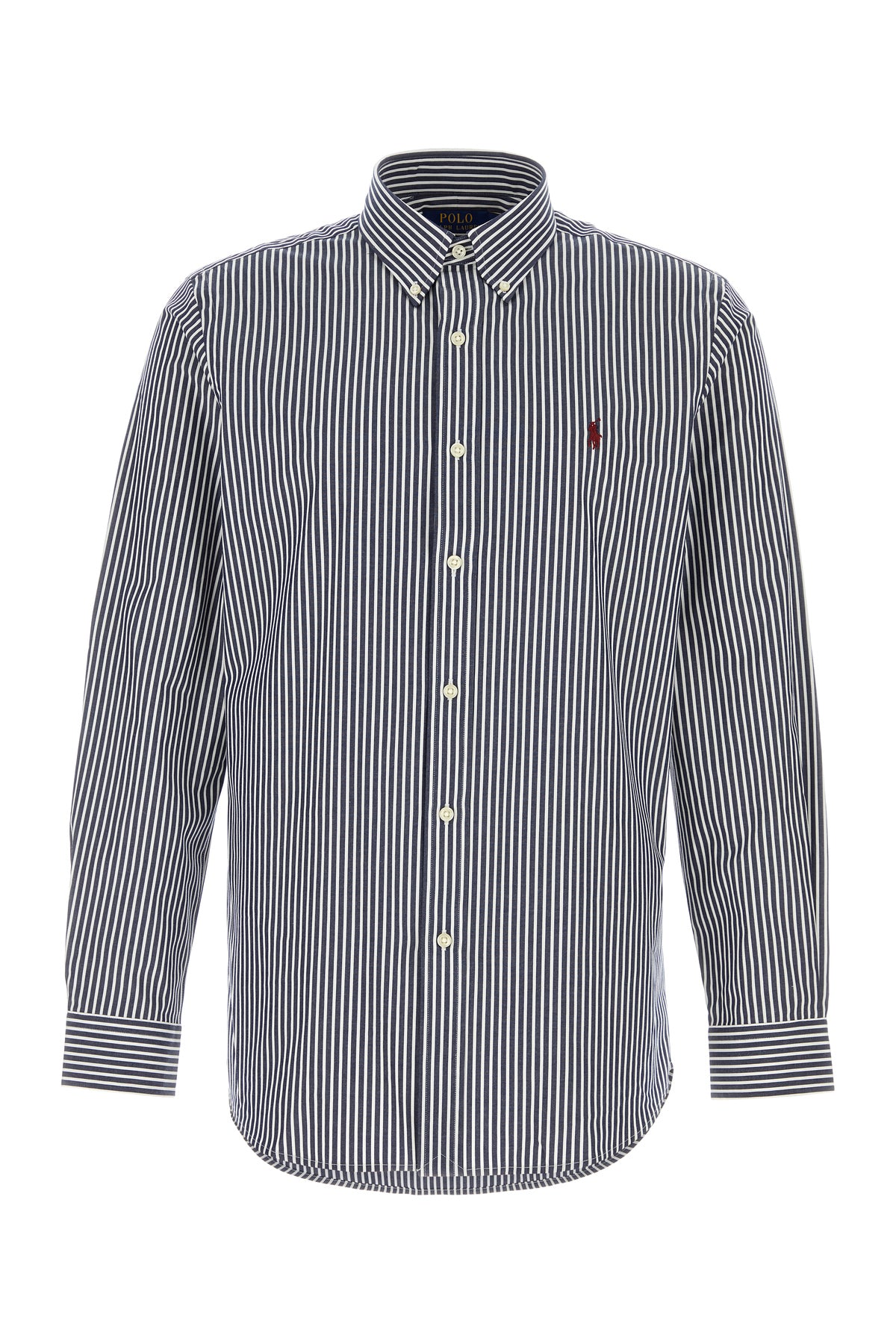 Camicia realizzata in cotone stretch caratterizzata da ricamo a righe su tutta la superficie e iconico ricamo logato sul petto.