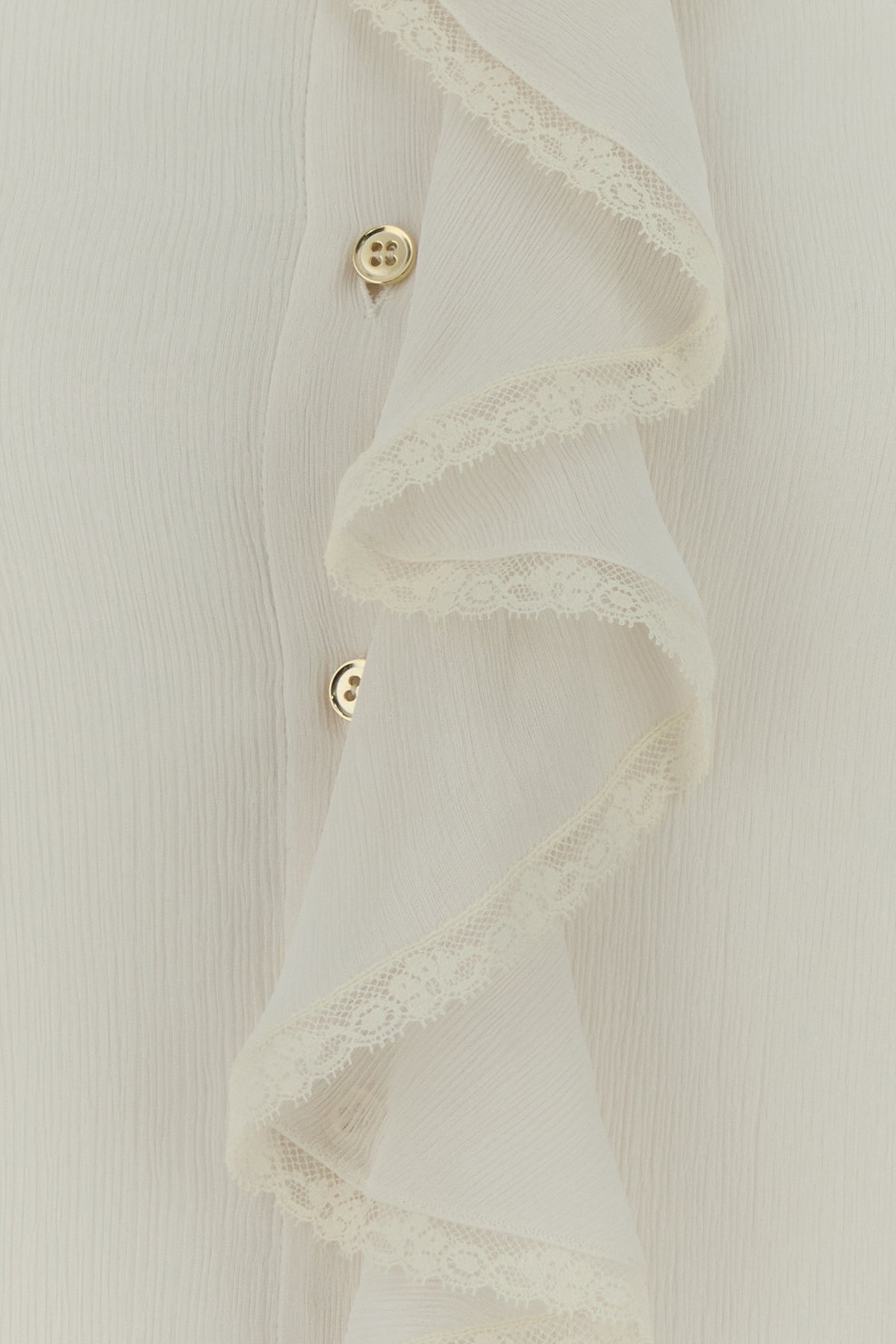 Camicia realizzata in crepe caratterizzata da ruches sulla parte frontale e sui polsini.