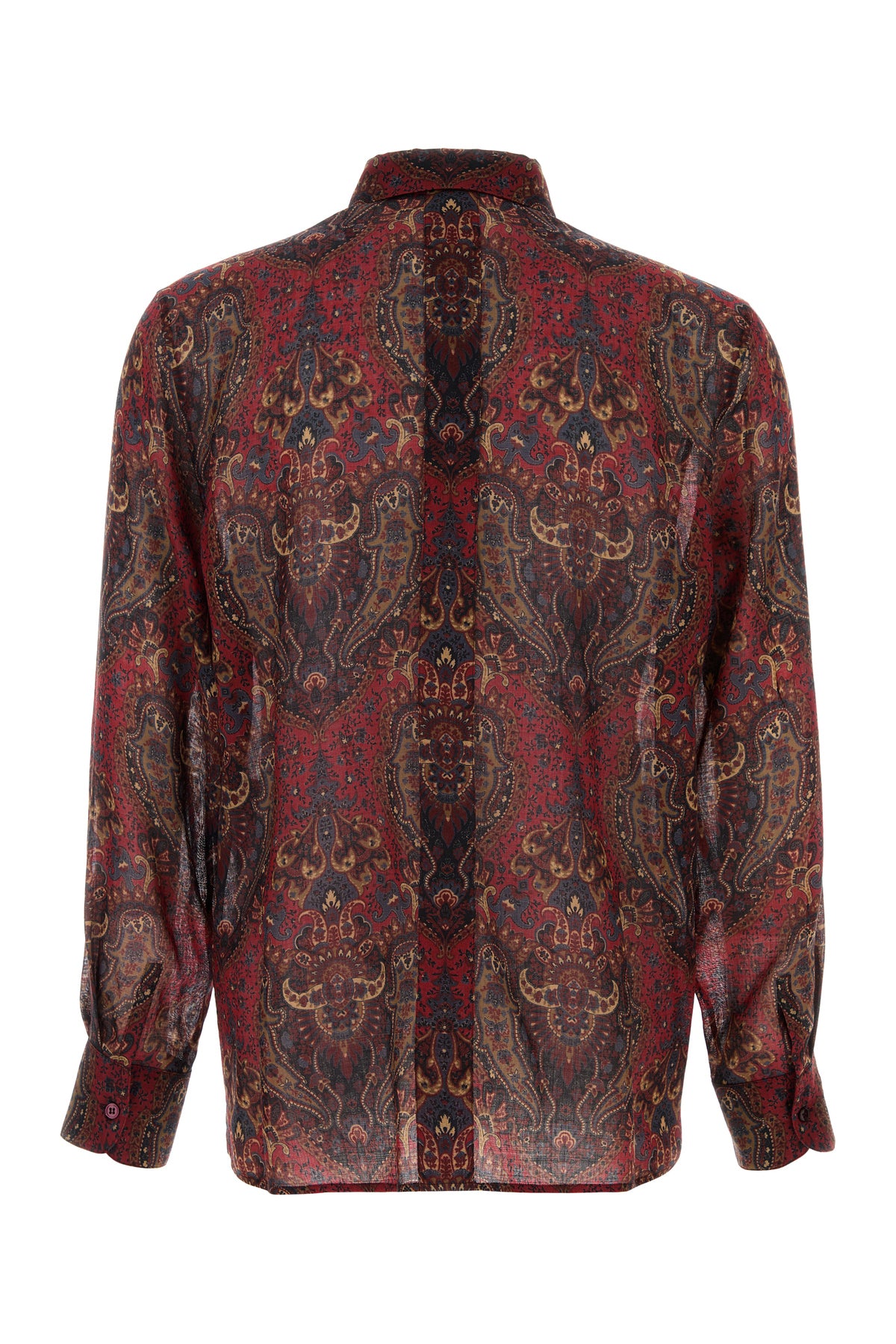 Camicia realizzata in crepe di lana caratterizzata da stampa Paisley su tutta la superficie.