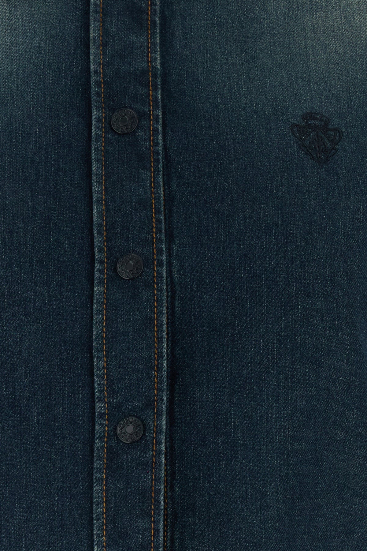 Camicia realizzata in denim di puro cotone slavato caratterizzata da ricamo logato sul petto.
