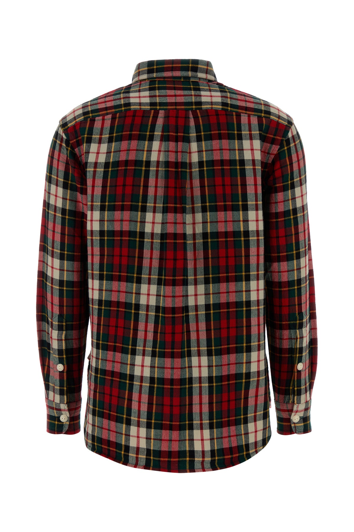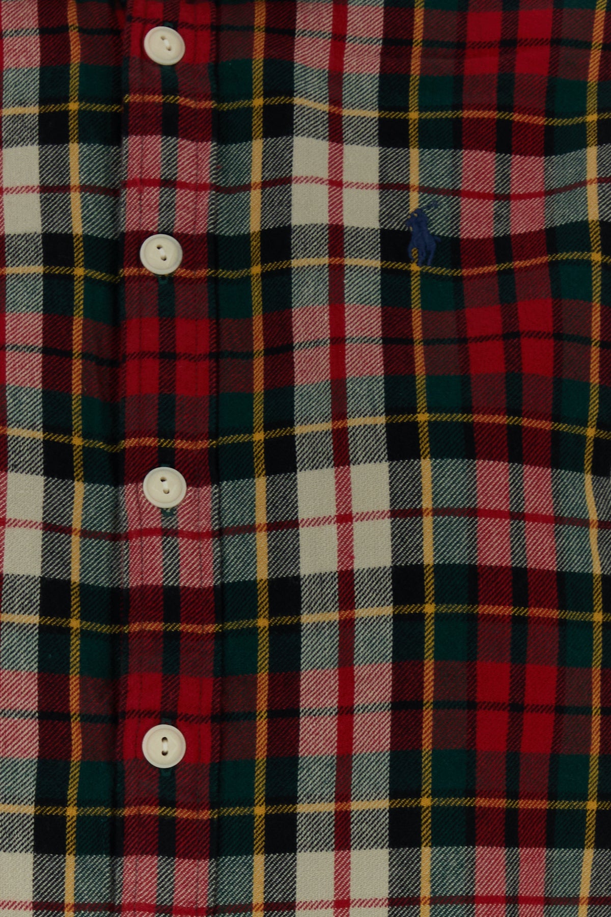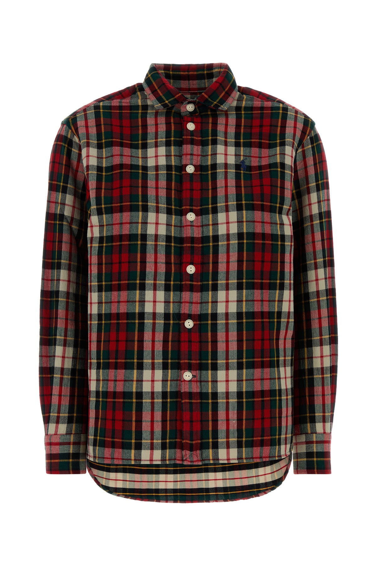 Camicia realizzata in flanella di puro cotone caratterizzata da ricamo a quadri su tutta la superficie e iconico ricamo logato sul petto.