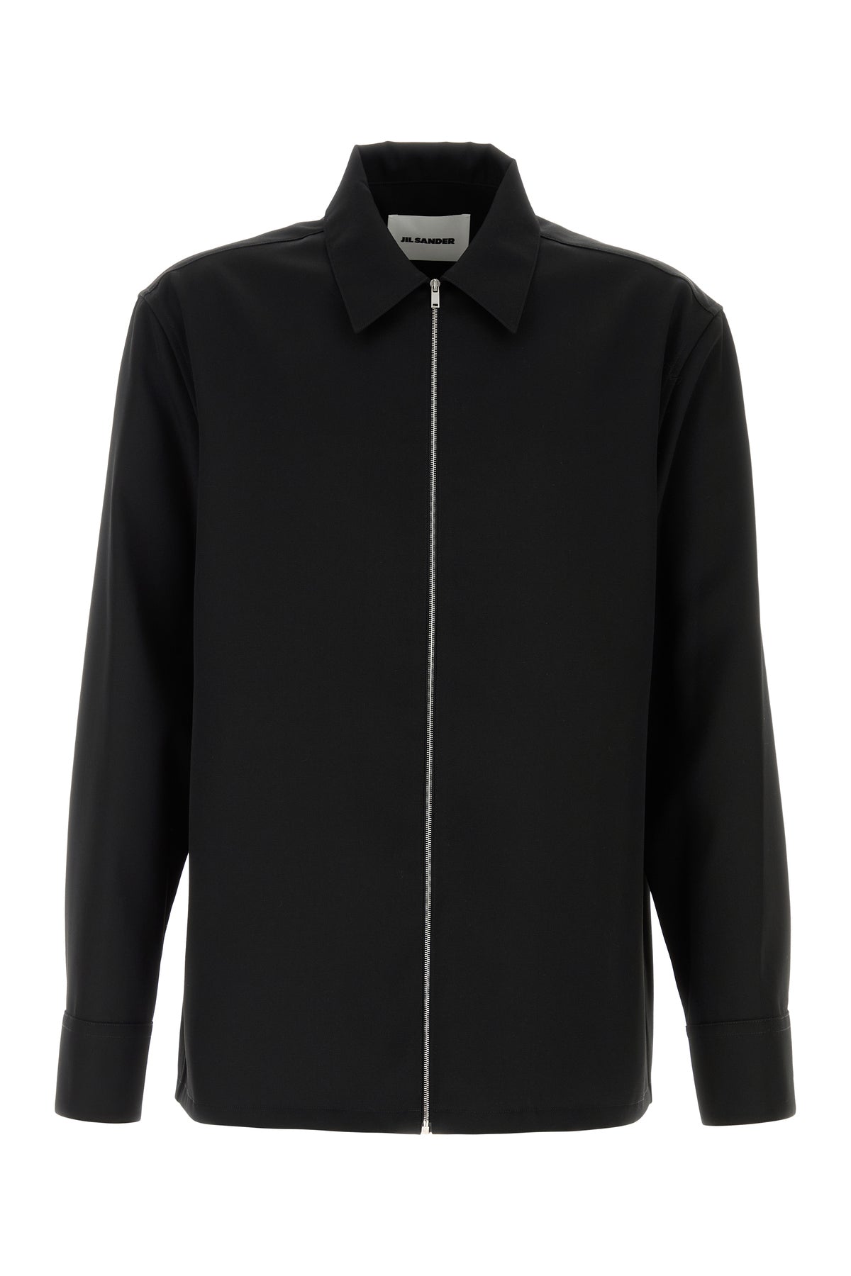 Camicia realizzata in gabardine di pura lana caratterizzata da chiusura mediante zip.