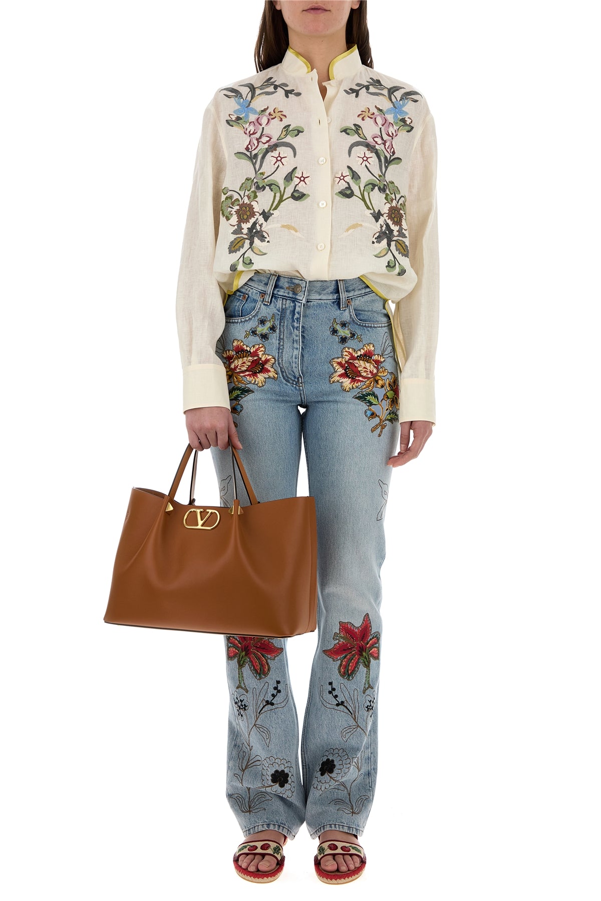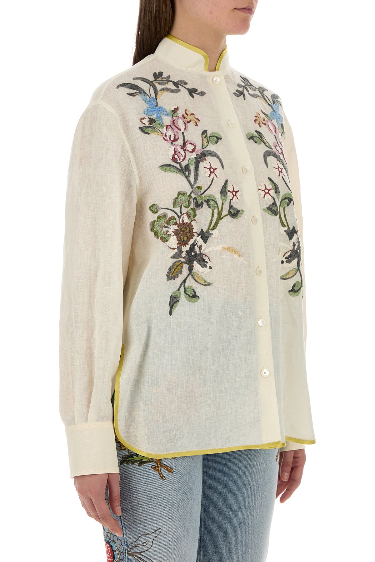 Camicia realizzata in puro lino caratterizzata da ricamo floreale sulla parte frontale.
