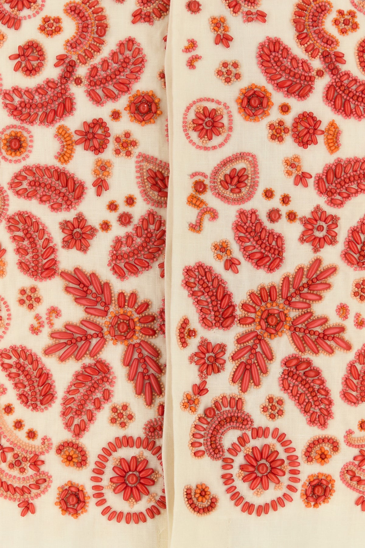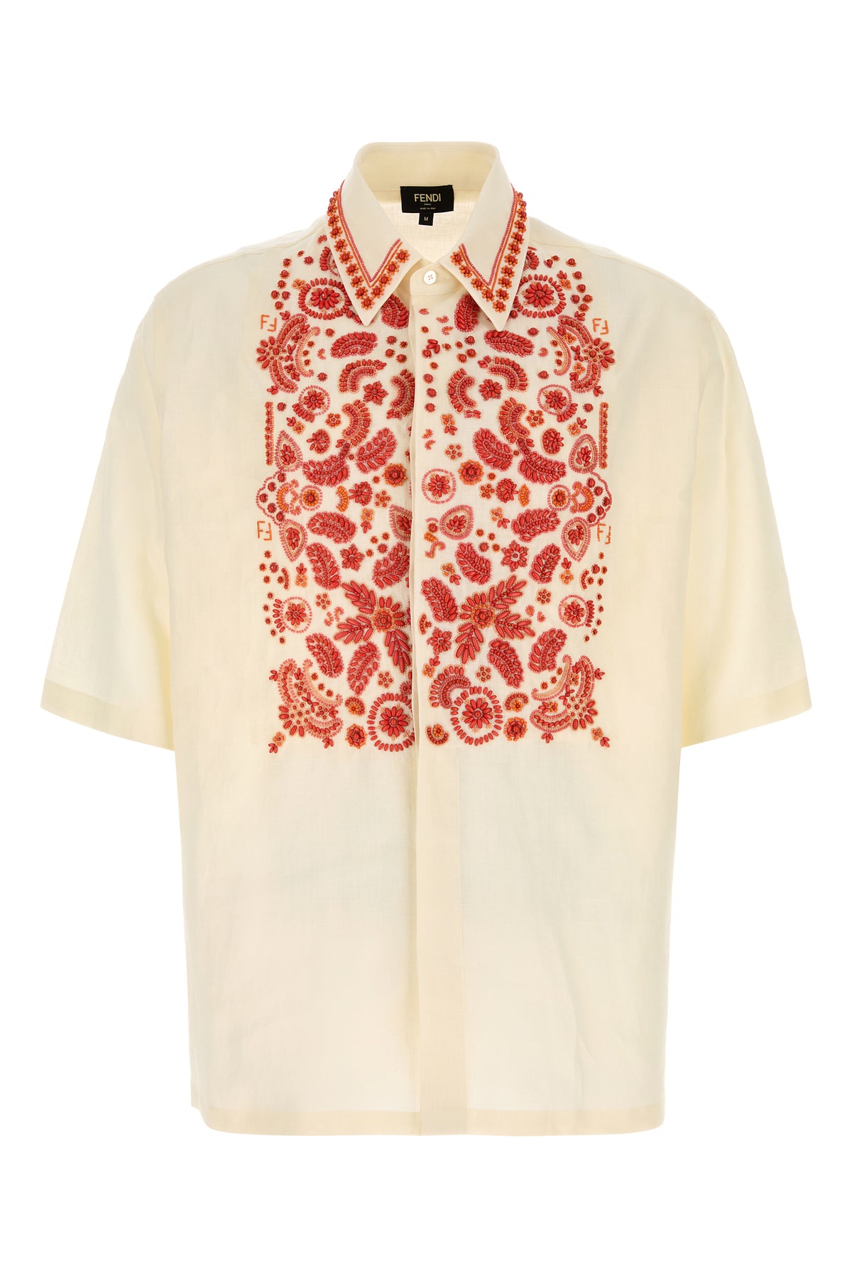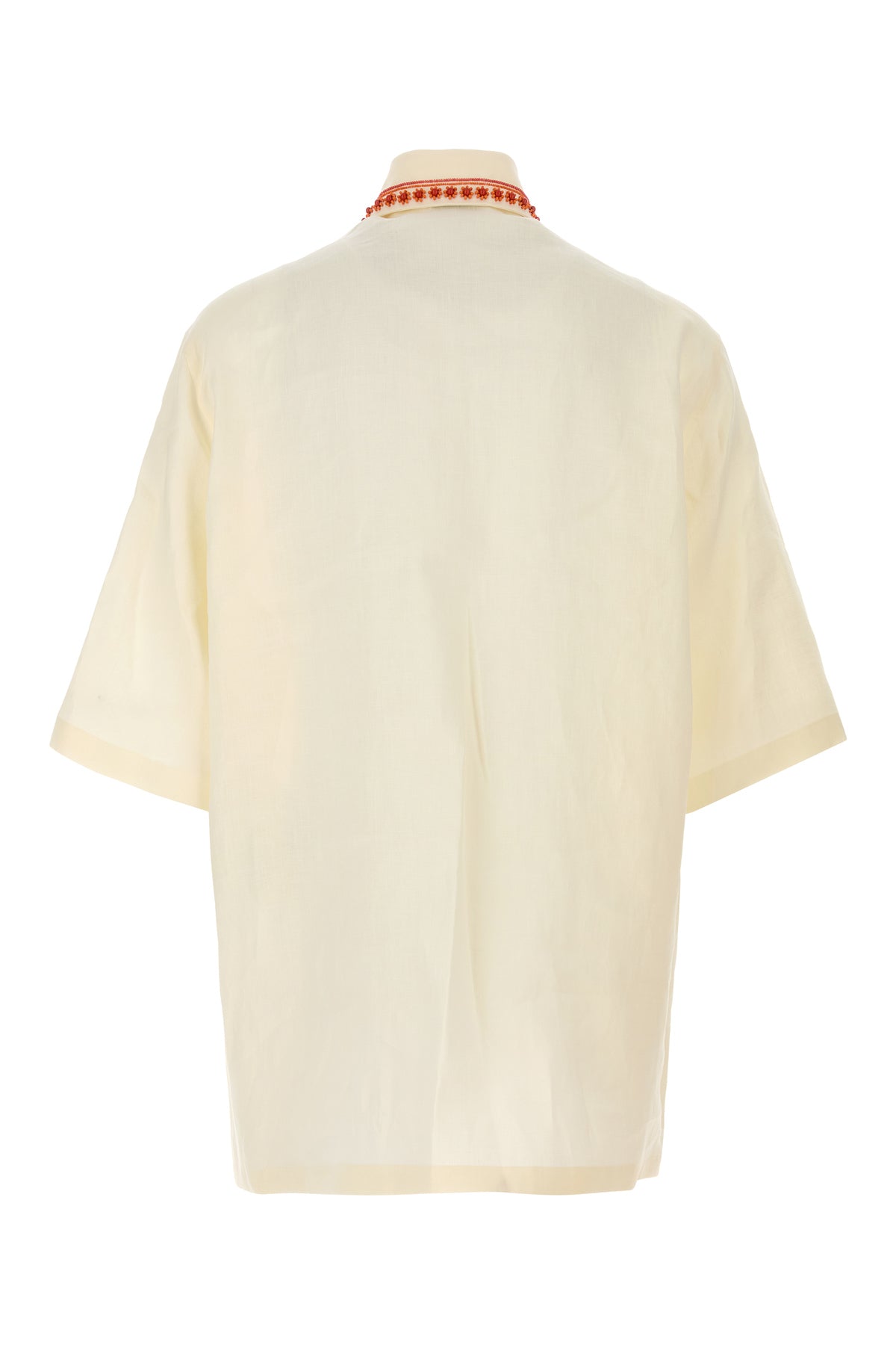 Camicia a maniche corte realizzata in puro lino arricchita da motivo Coral Bandana con perline sulla parte frontale.