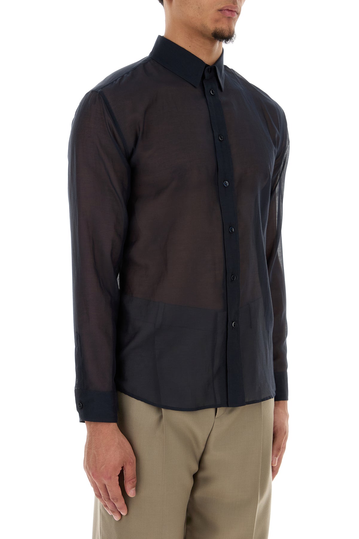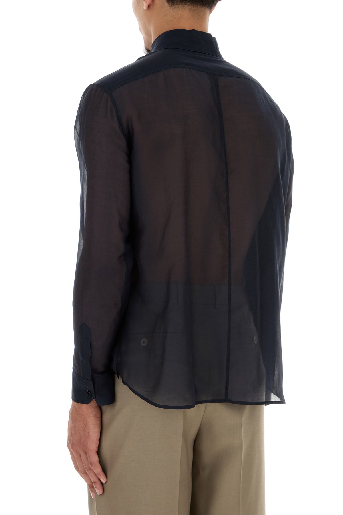 Camicia semitrasparente realizzata in cotone e seta caratterizzata da colletto a punte corte.