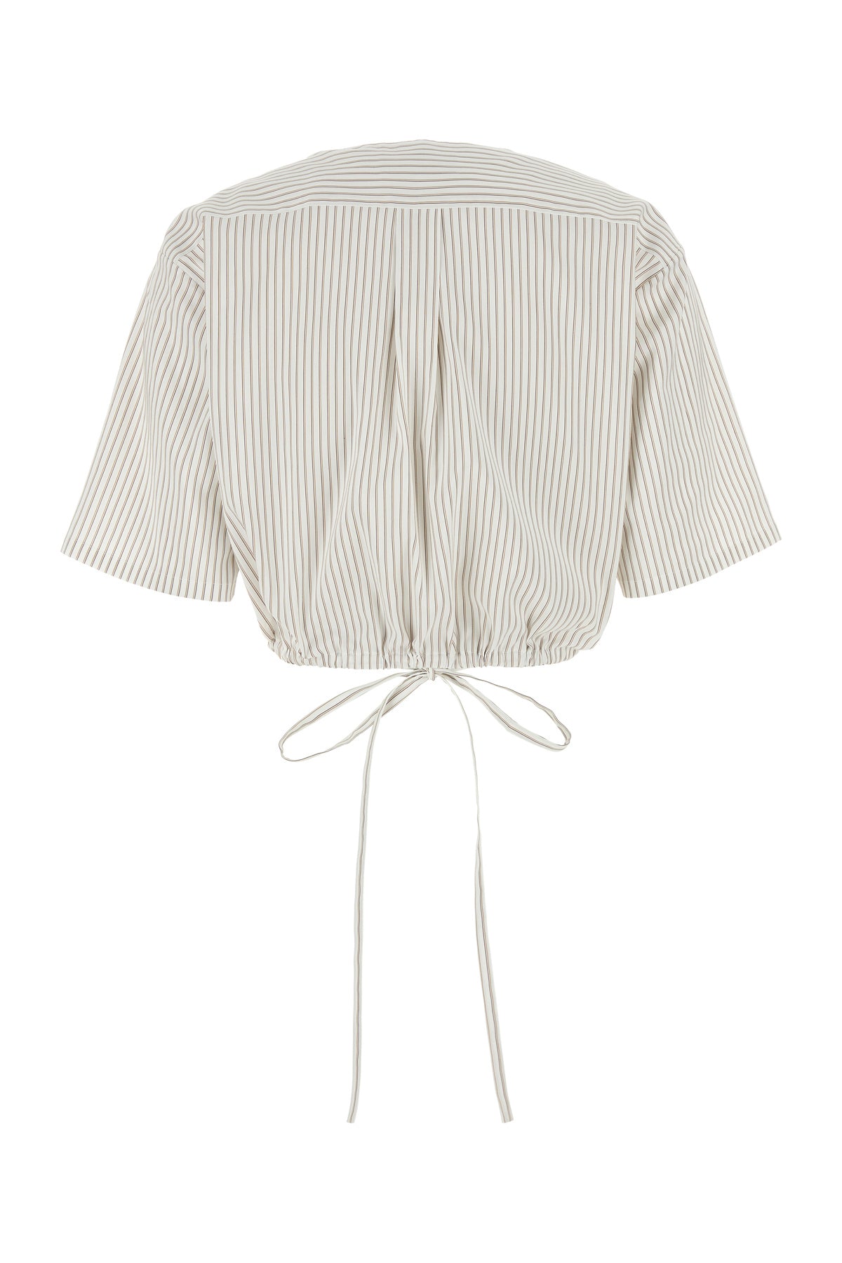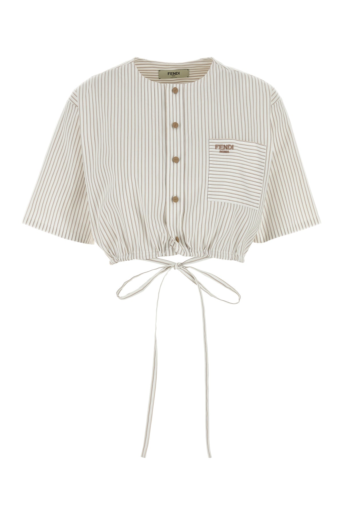 Camicia a maniche corte realizzata in cotone e seta caratterizzata da ricamo a righe su tutta la superficie e logo ricamato sul petto.