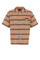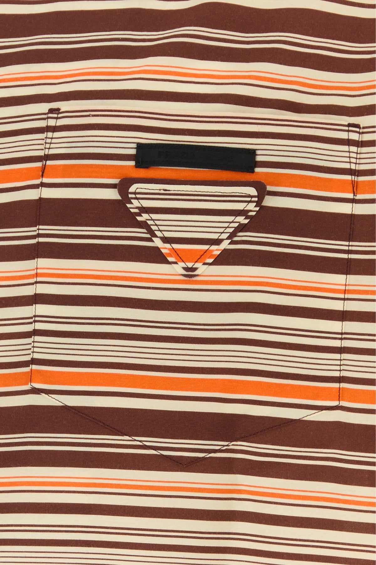 Camicia a maniche corte realizzata in cotone e seta arricchita da iconico triangolo in tessuto sul petto.