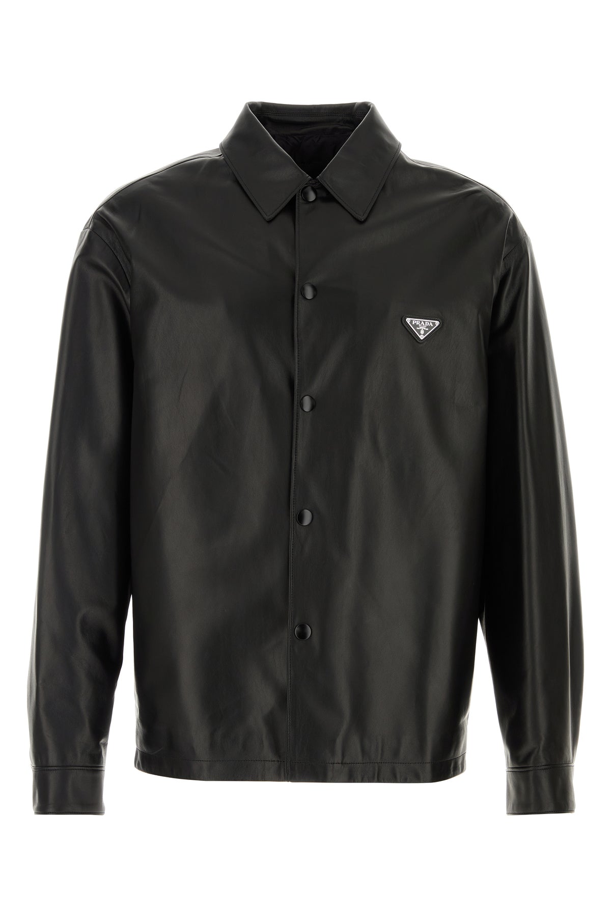Camicia realizzata in nappa di agnello arricchita da iconico triangolo metallico logato sul petto.