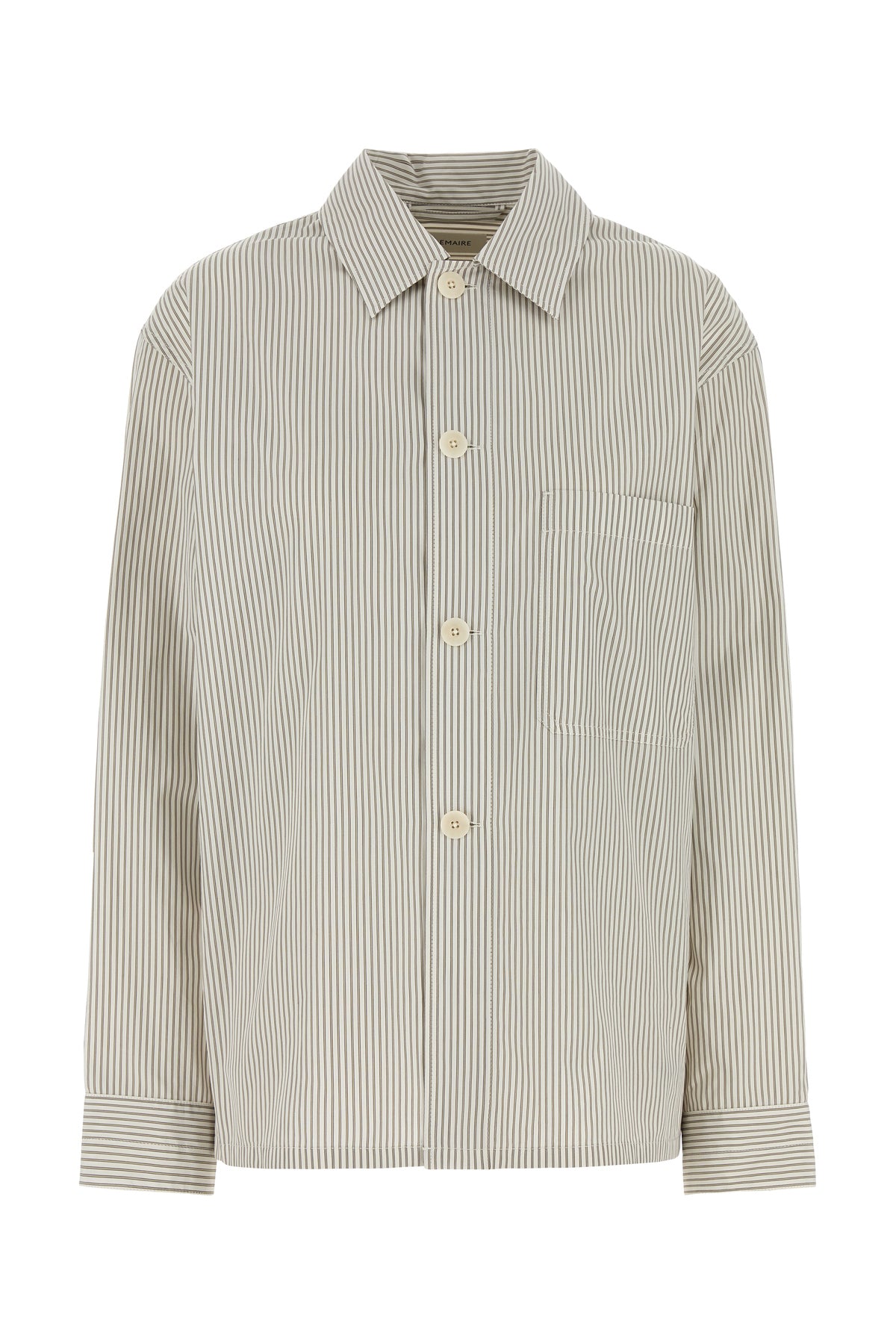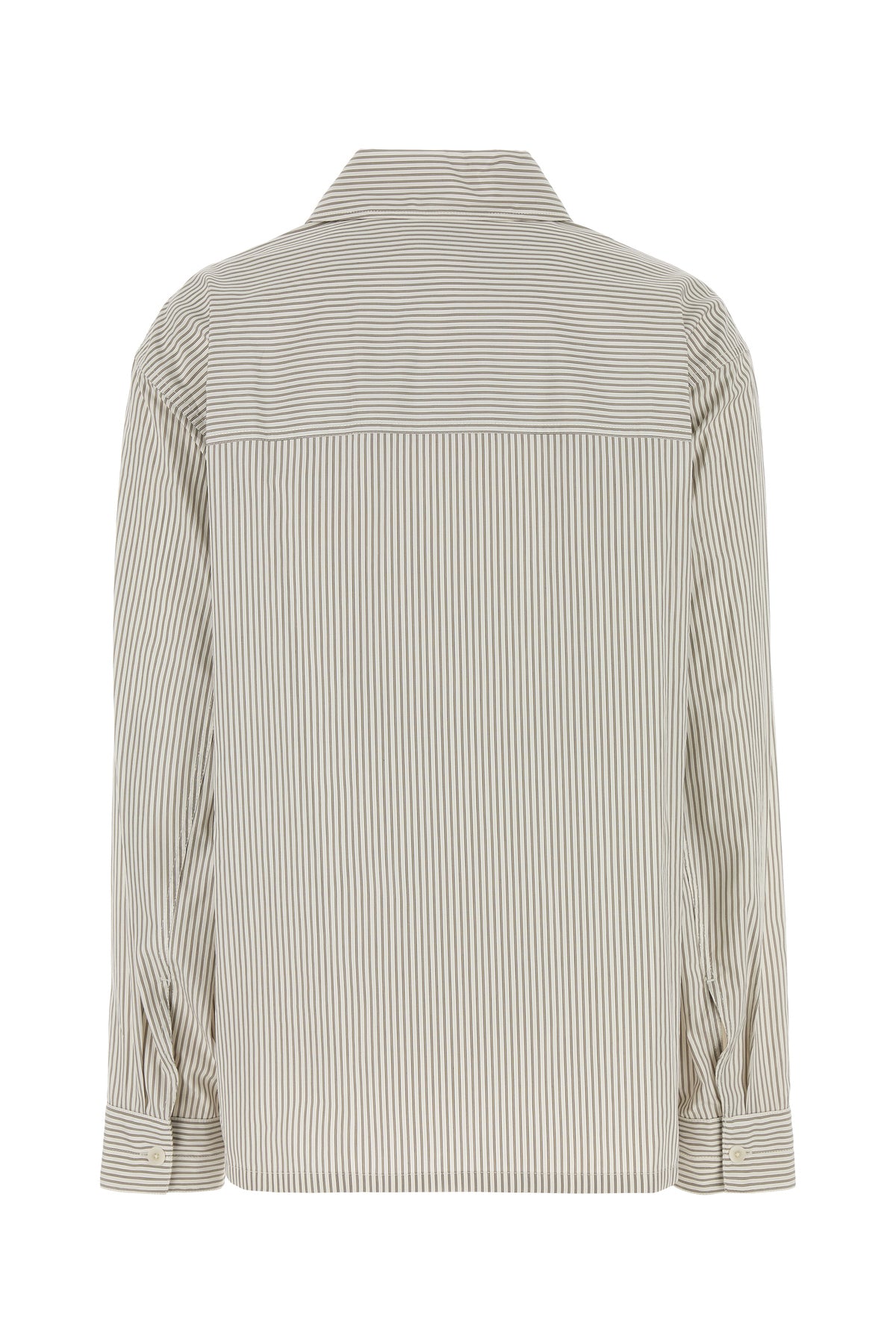 Camicia pigiama in popeline di puro cotone caratterizzata da ricamo a righe su tutta la superficie.