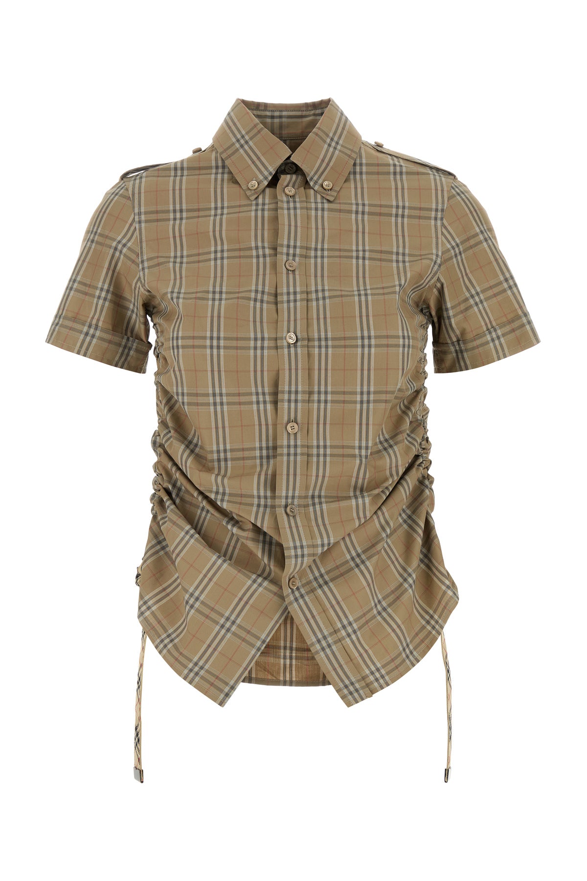 Camicia a maniche corte realizzata in popeline di puro cotone caratterizzata da ricamo Burberry Check su tutta la superficie.