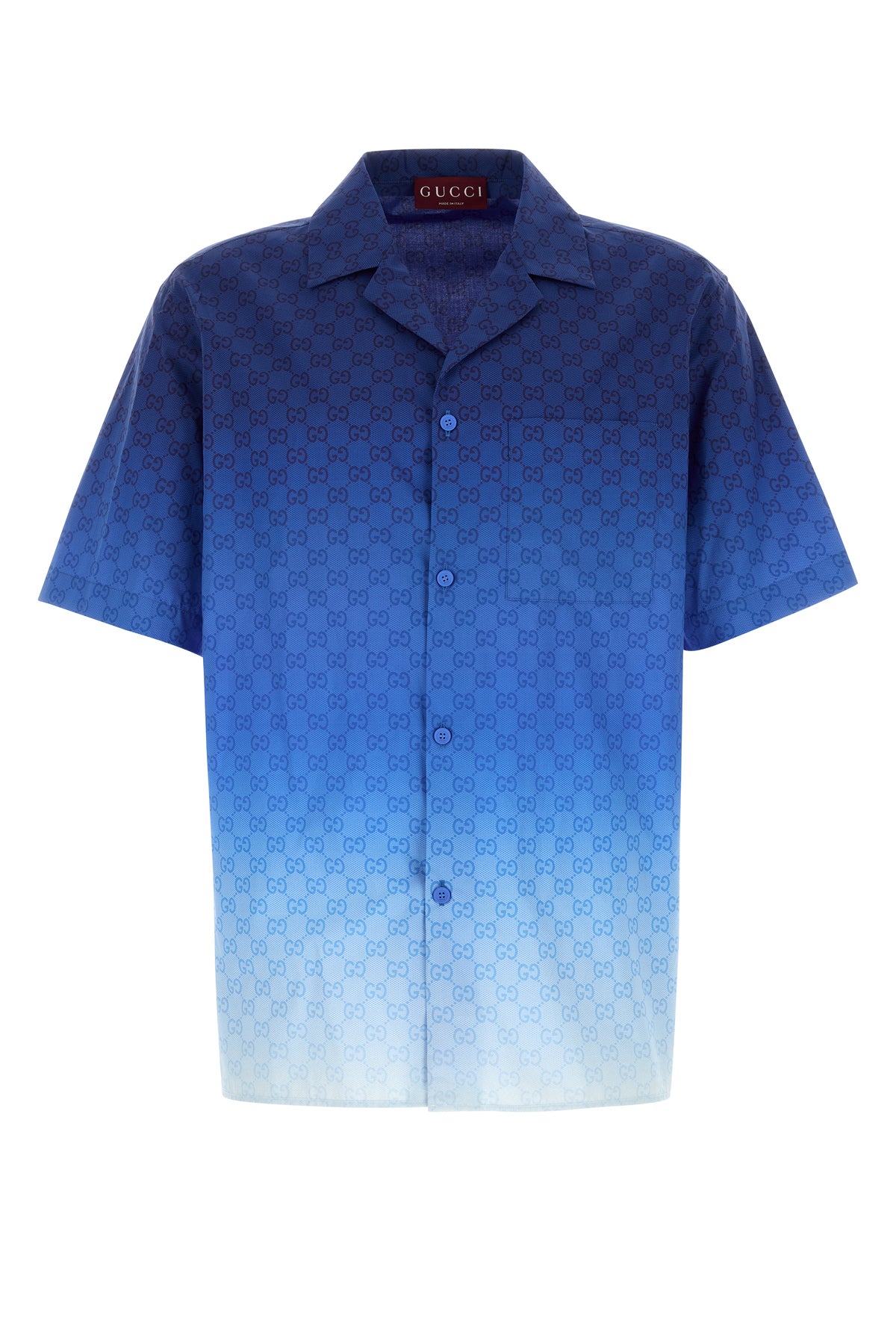Camicia a maniche corte realizzata in popeline di puro cotone sfumato caratterizzato da stampa GG su tutta la superficie.