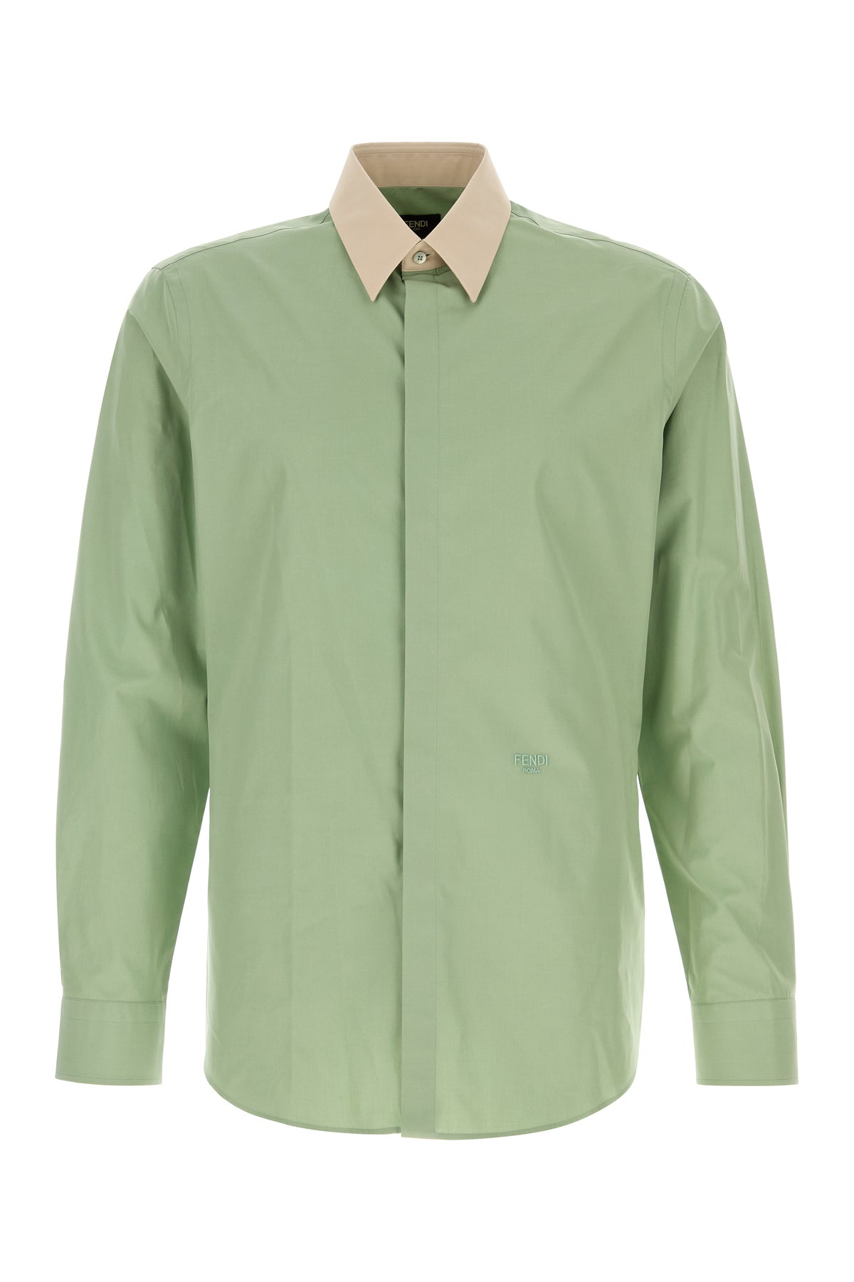 Camicia realizzata in popeline di puro cotone caratterizzata da ricamo Fendi Roma tonale sulla parte frontale.