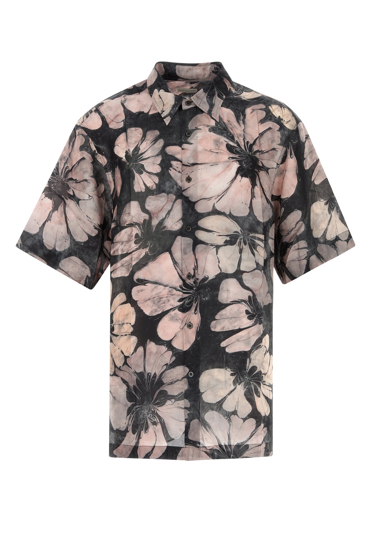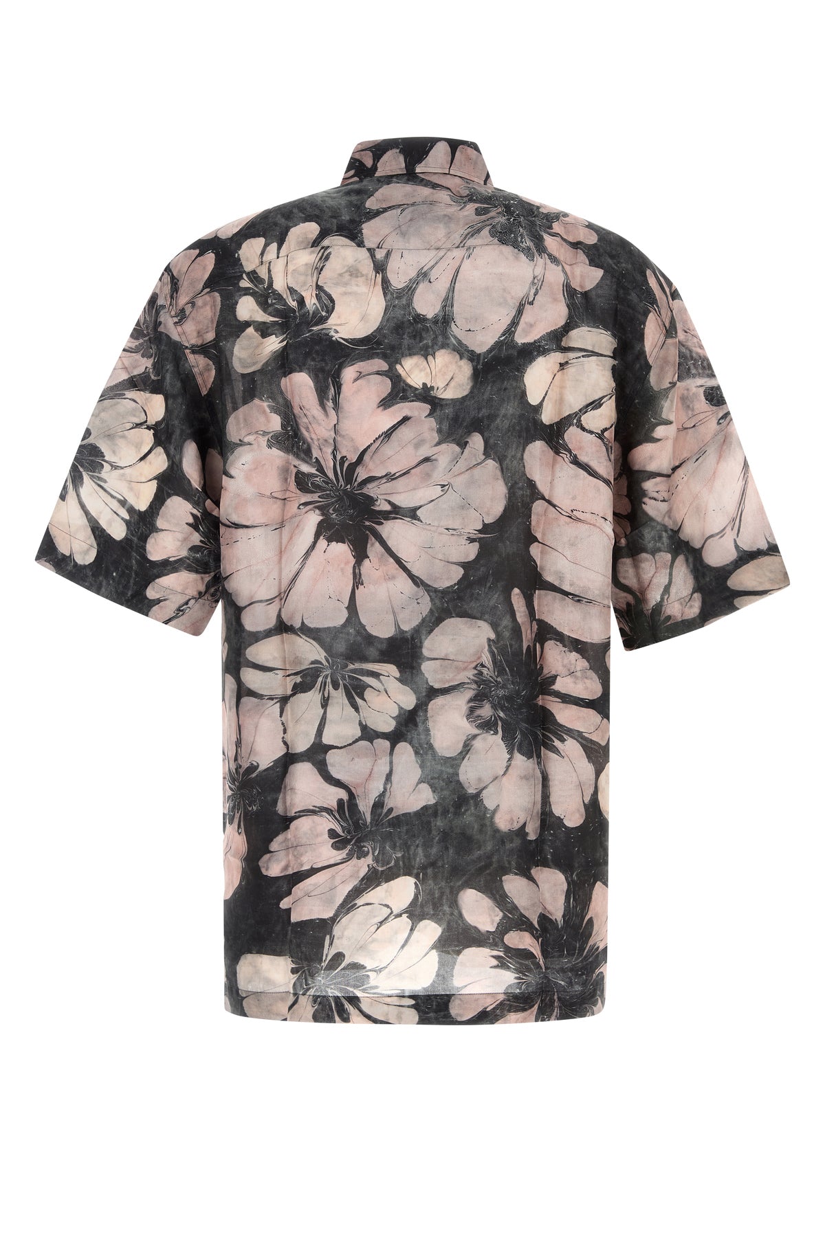 Camicia a maniche corte realizzata in pura seta caratterizzata da particolare stampa floreale su tutta la superficie.