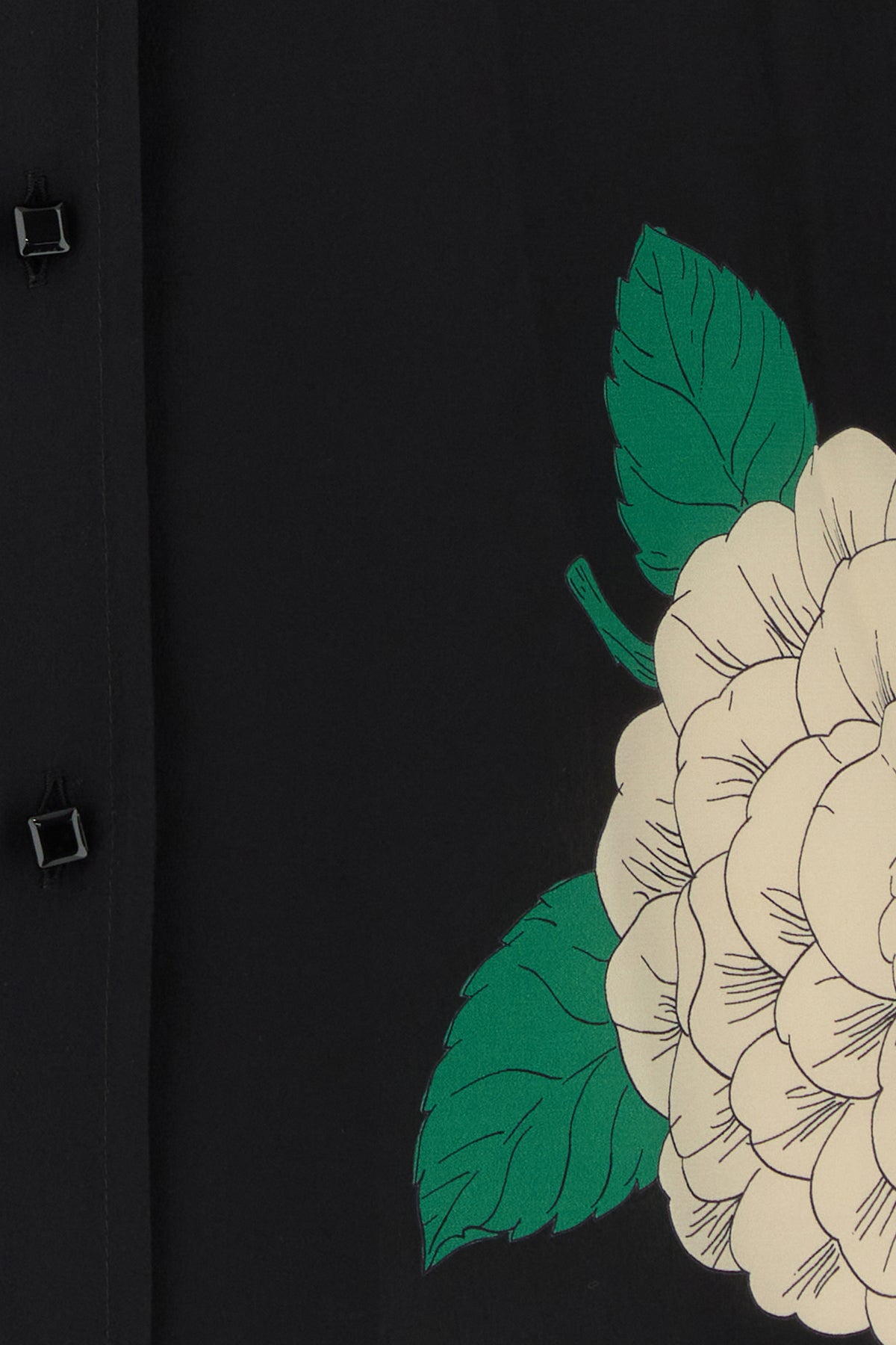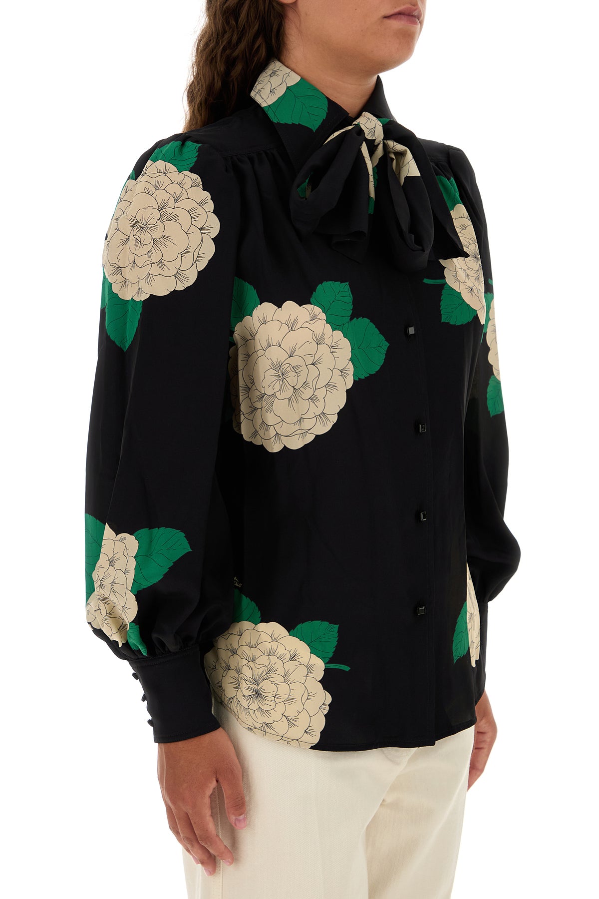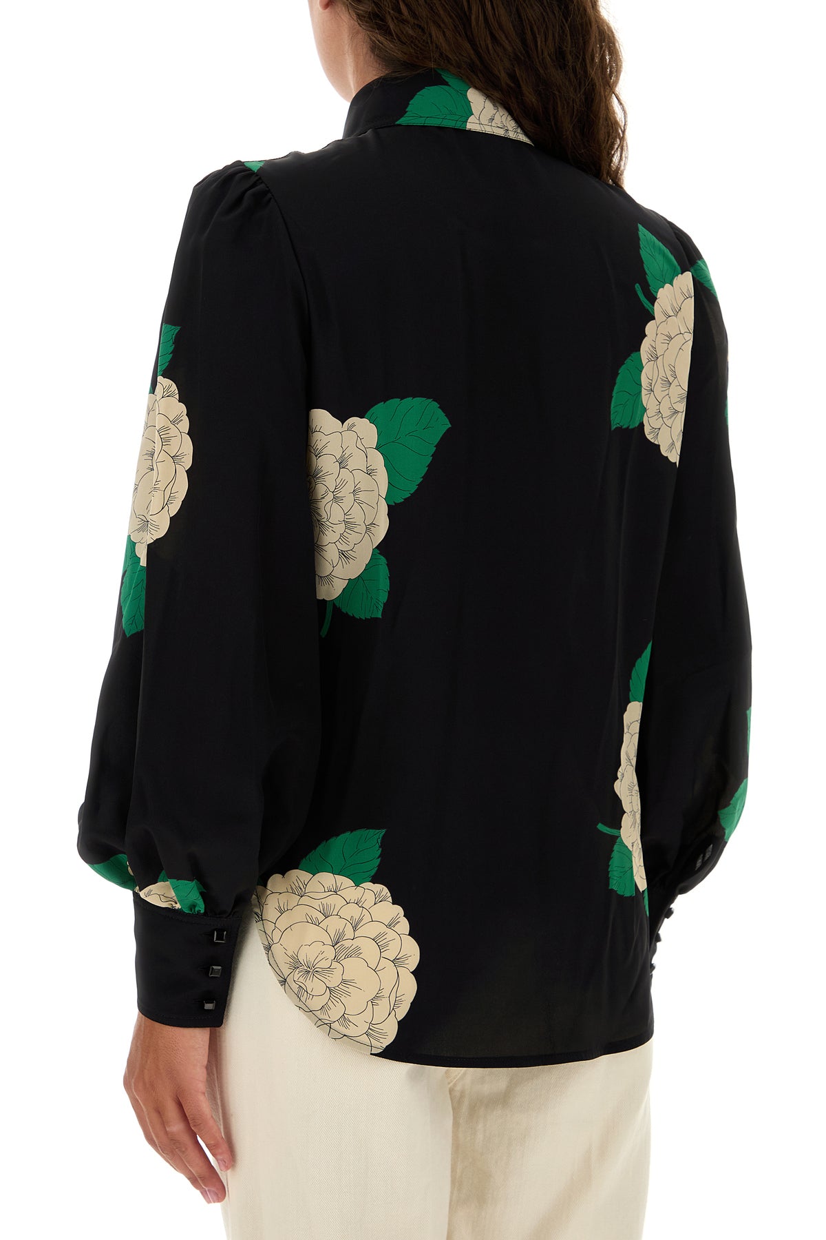 Camicia realizzata in pura seta caratterizzata da stampa floreale su tutta la superficie.