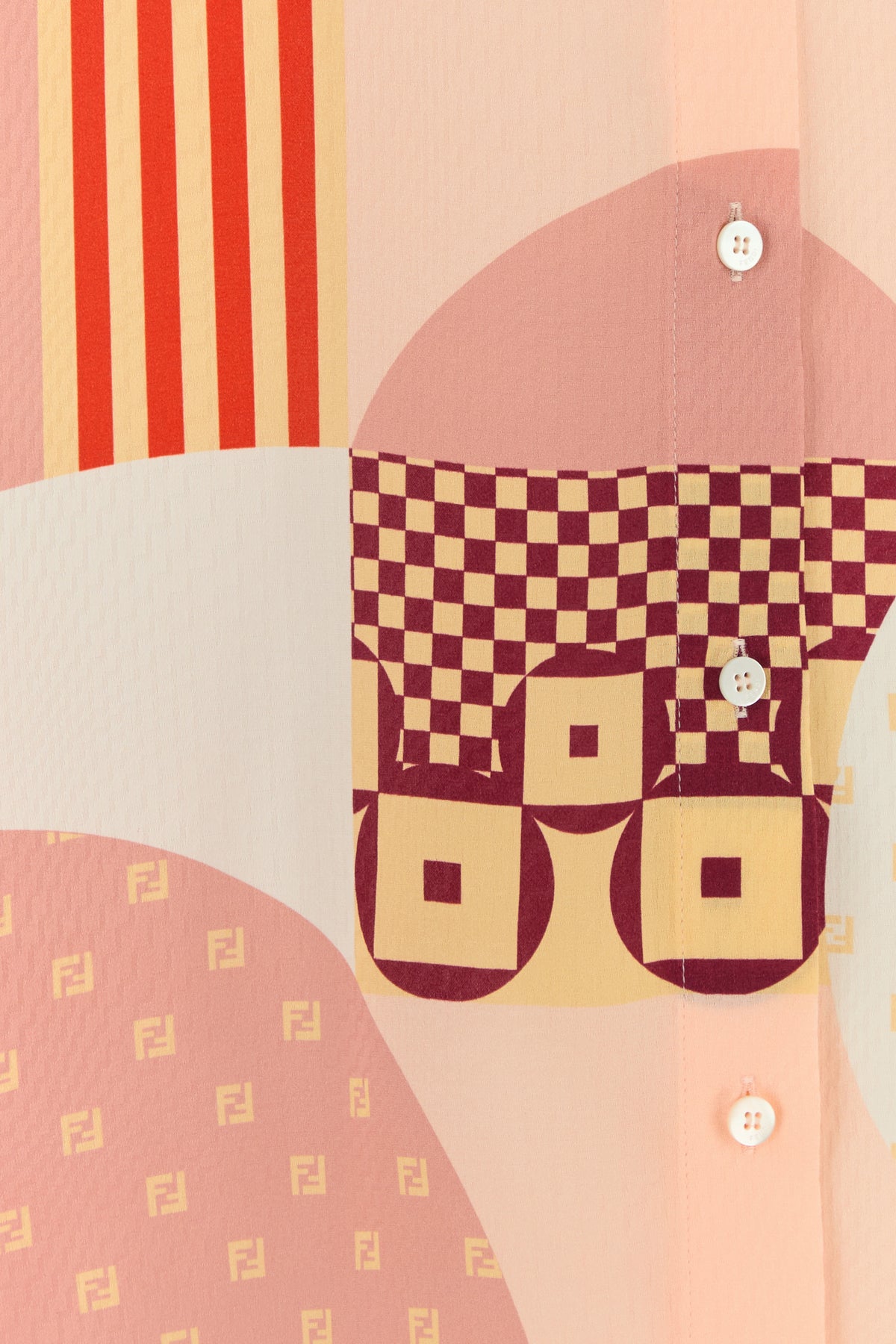 Camicia realizzata in pura seta caratterizzata da stampa Patchwork su tutta la superficie.