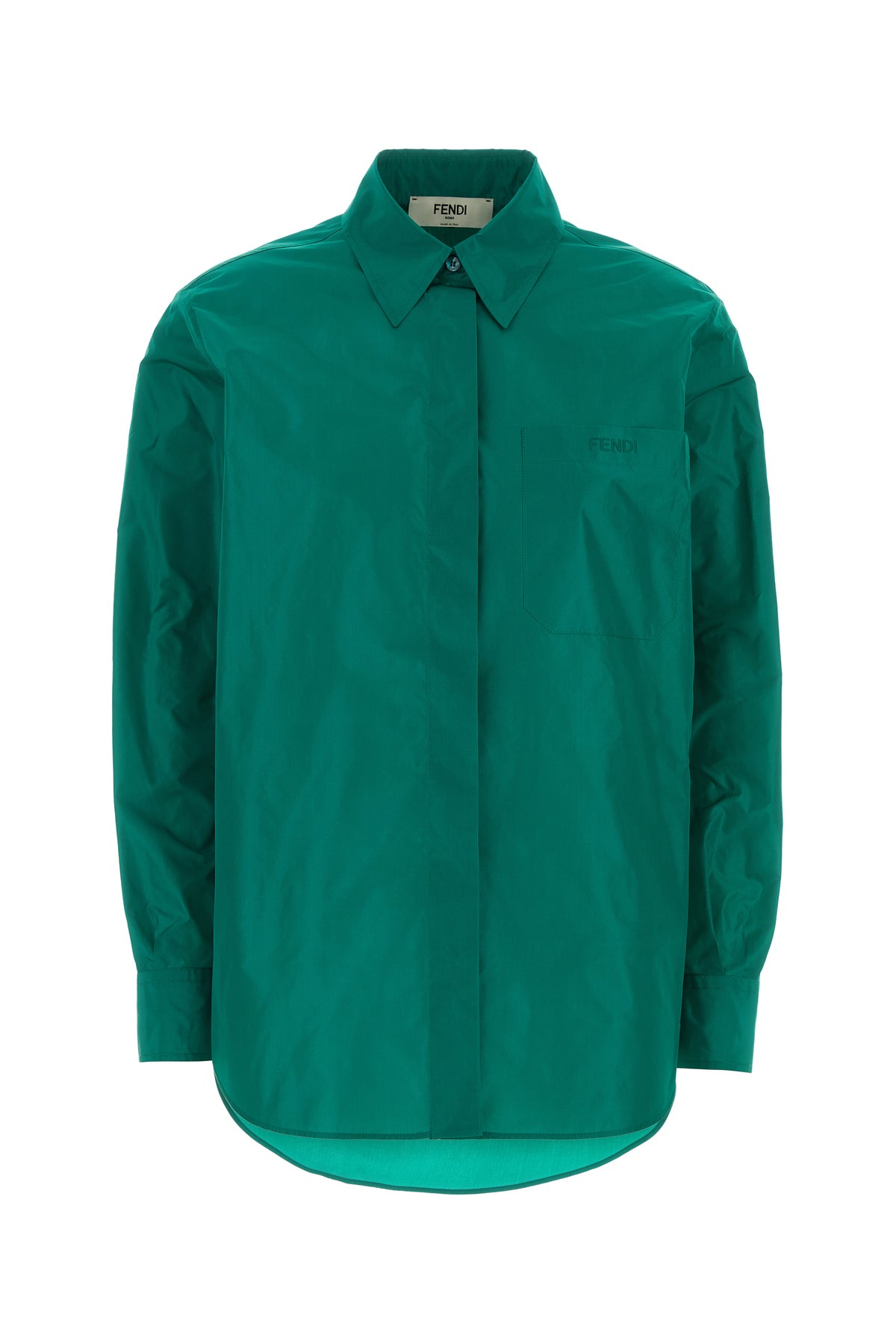 Camicia realizzata in taffetà di pura seta caratterizzata da motivo Fendi in rilievo sul petto.