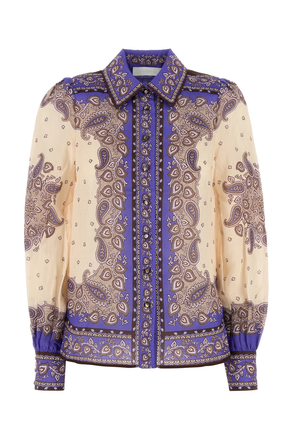Camicia realizzata in ramiè caratterizzata da stampa a motivo paisley sul tutta la superficie.