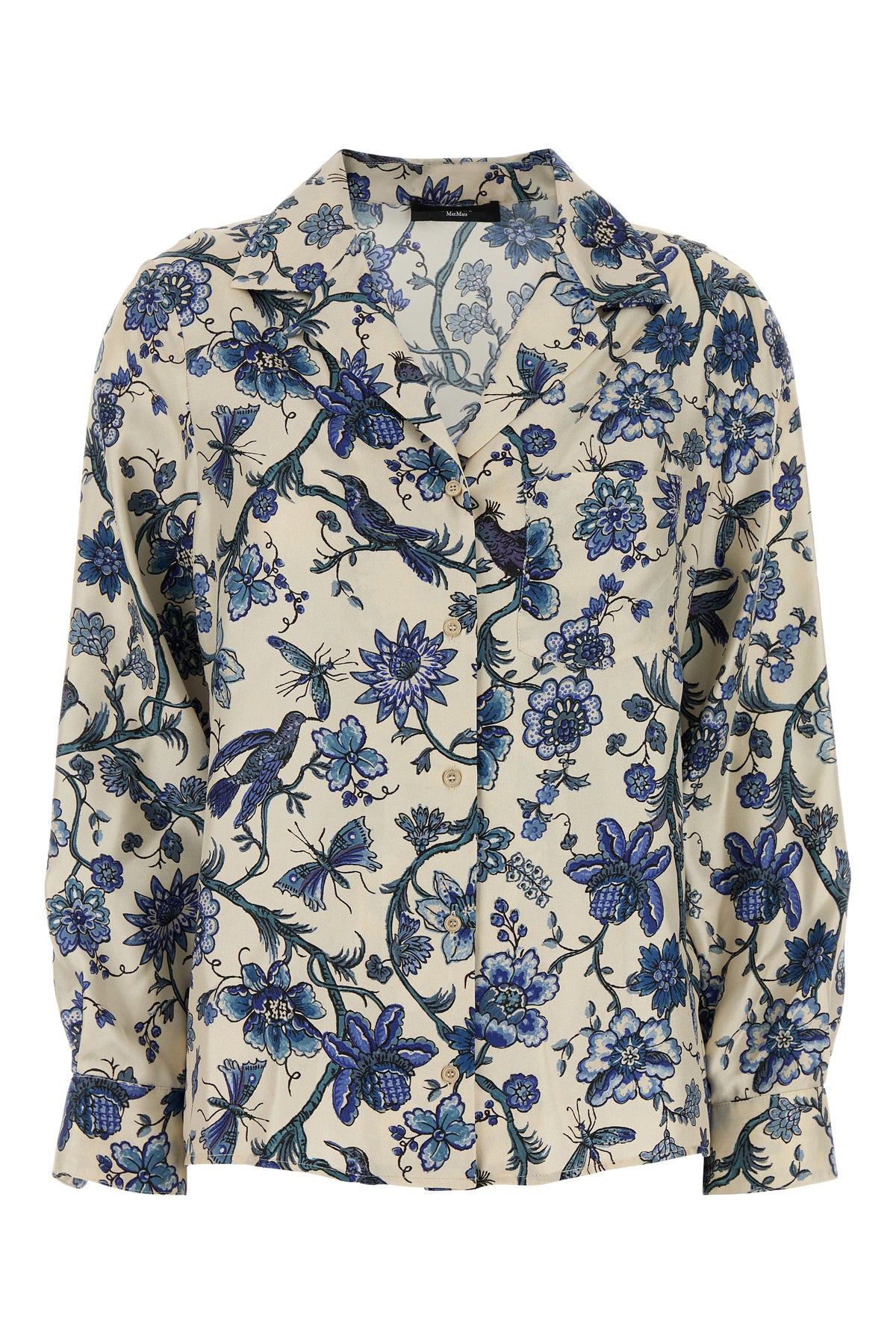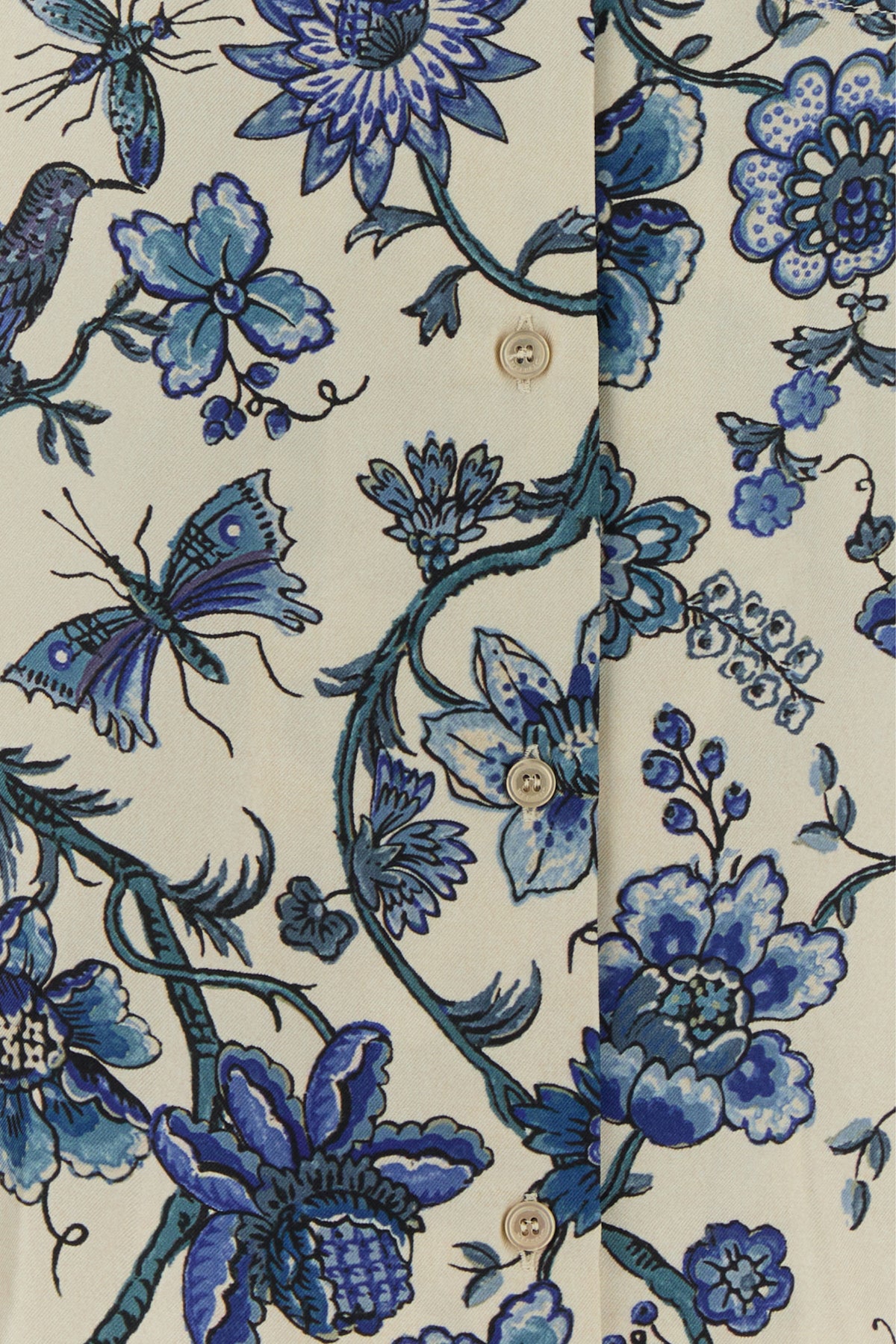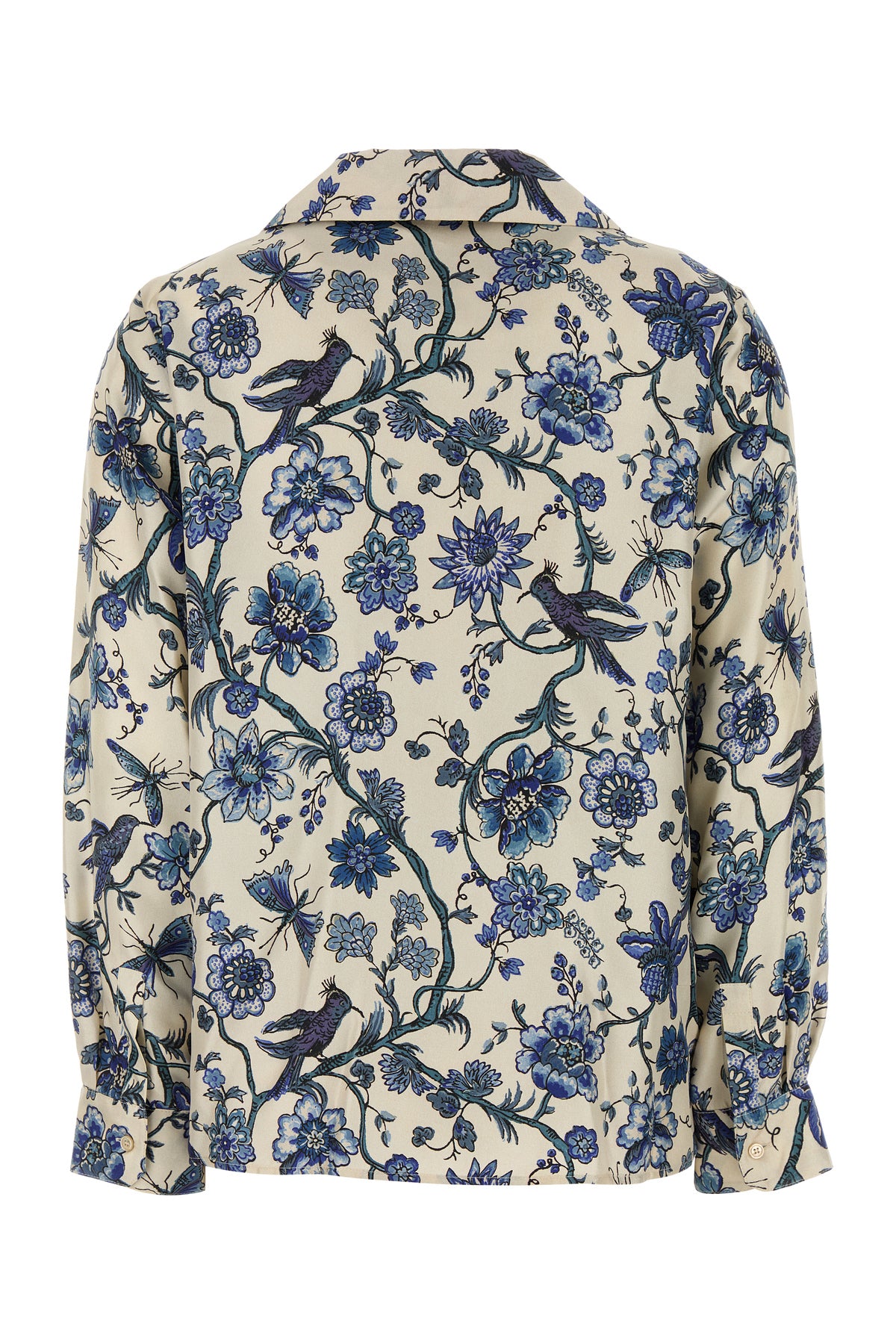 Camicia realizzata in raso di pura seta caratterizzata da stampa floreale su tutta la superficie.