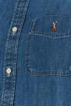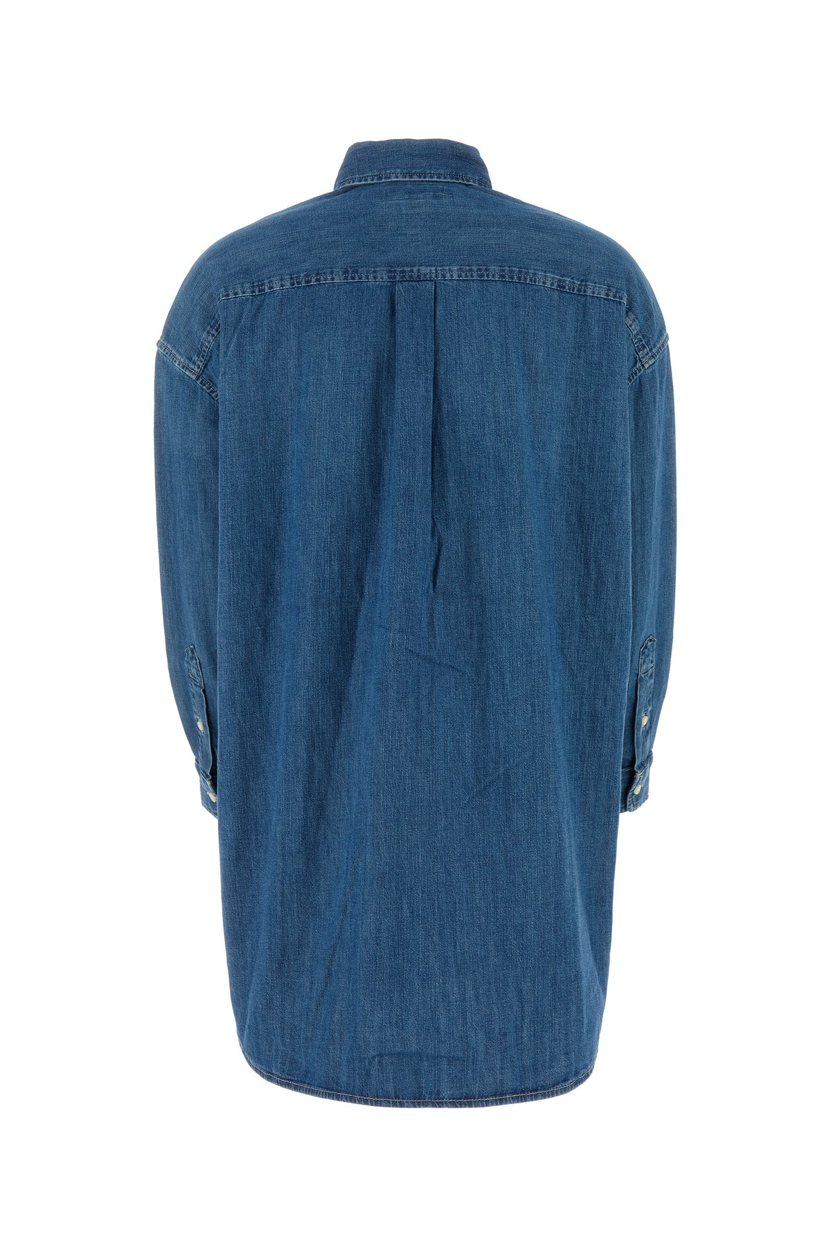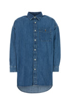 Camicia oversize realizzata in denim di puro cotone caratterizzata da iconico logo ricamato sul petto.