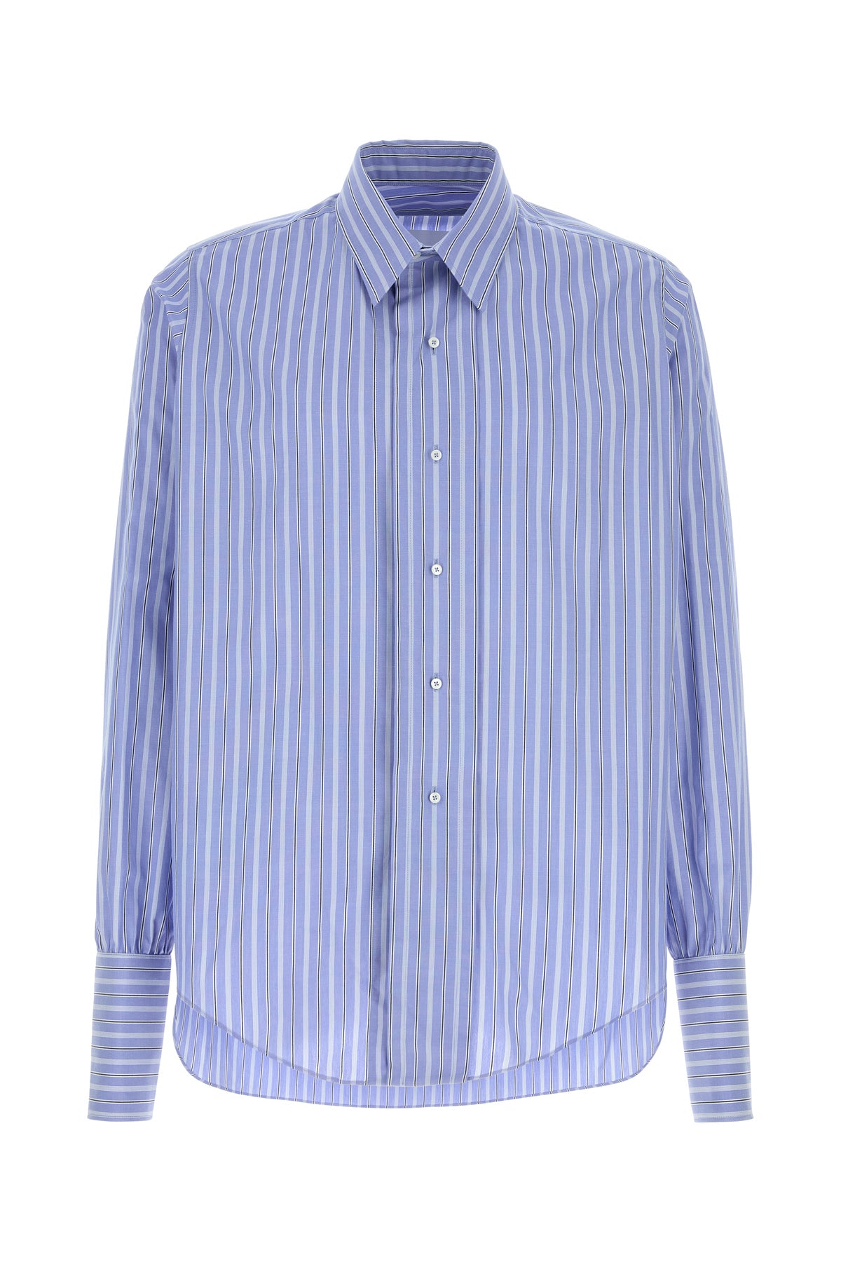 Camicia oversize realizzata in popeline di puro cotone caratterizzata da ricamo a righe su tutta la superficie.
