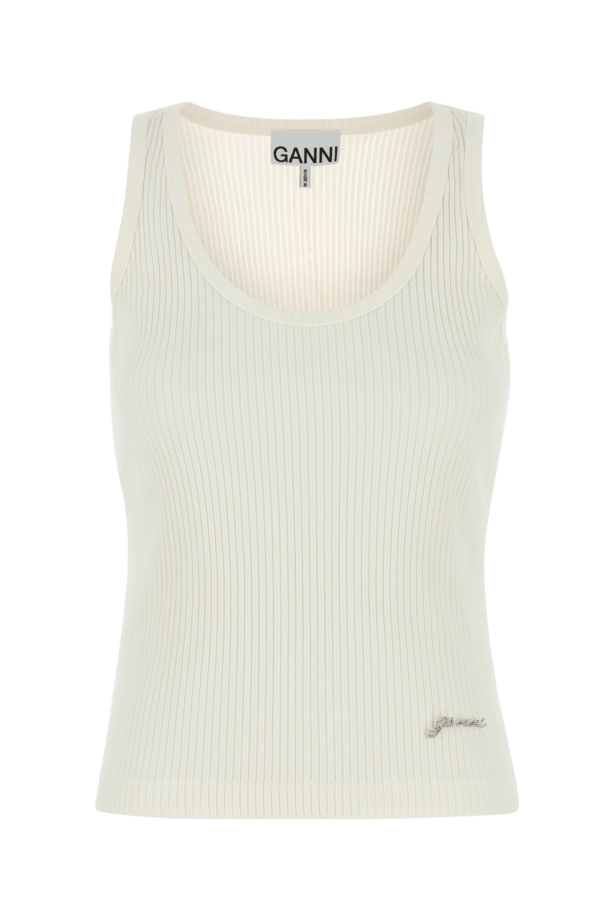 Canotta realizzata in puro cotone a costine arricchita da dettaglio metallico logato sul fondo.