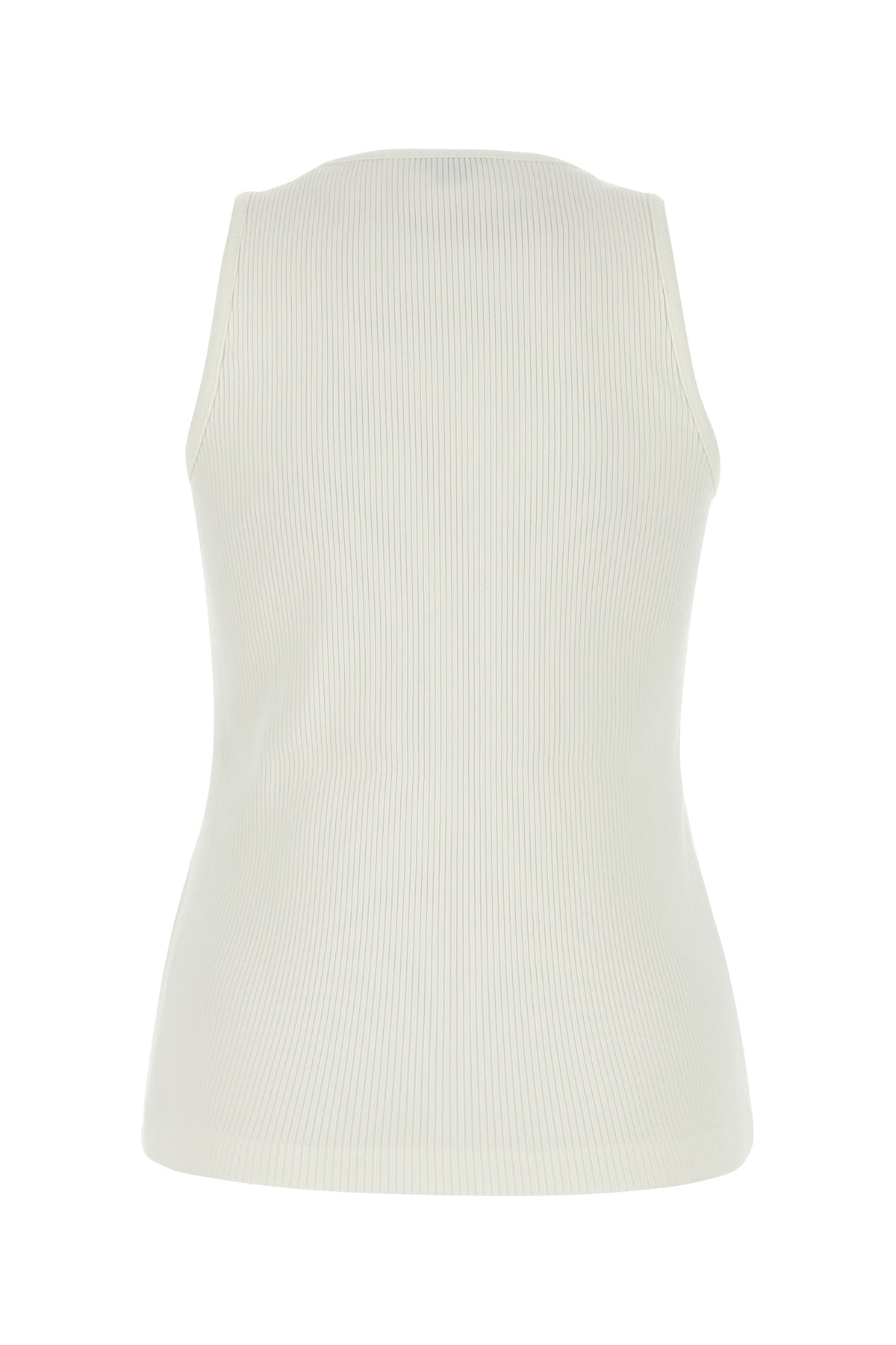Canotta realizzata in cotone stretch a costine arricchita da applicazione logata a contrasto sul fondo.