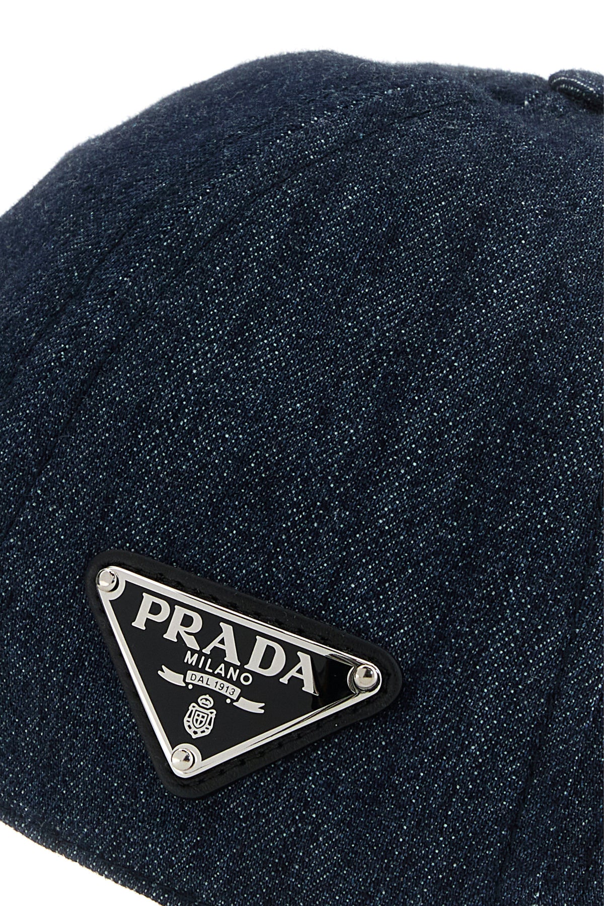 Cappello da baseball realizzato in denim di puro cotone arricchito da iconico triangolo metallico logato sul lato.
