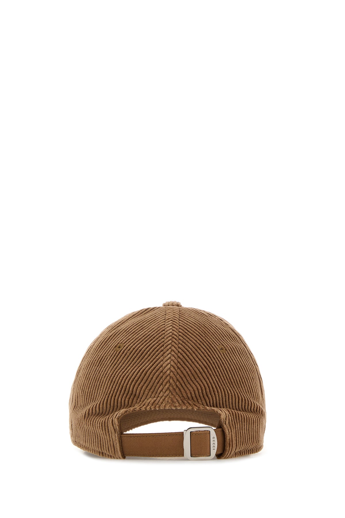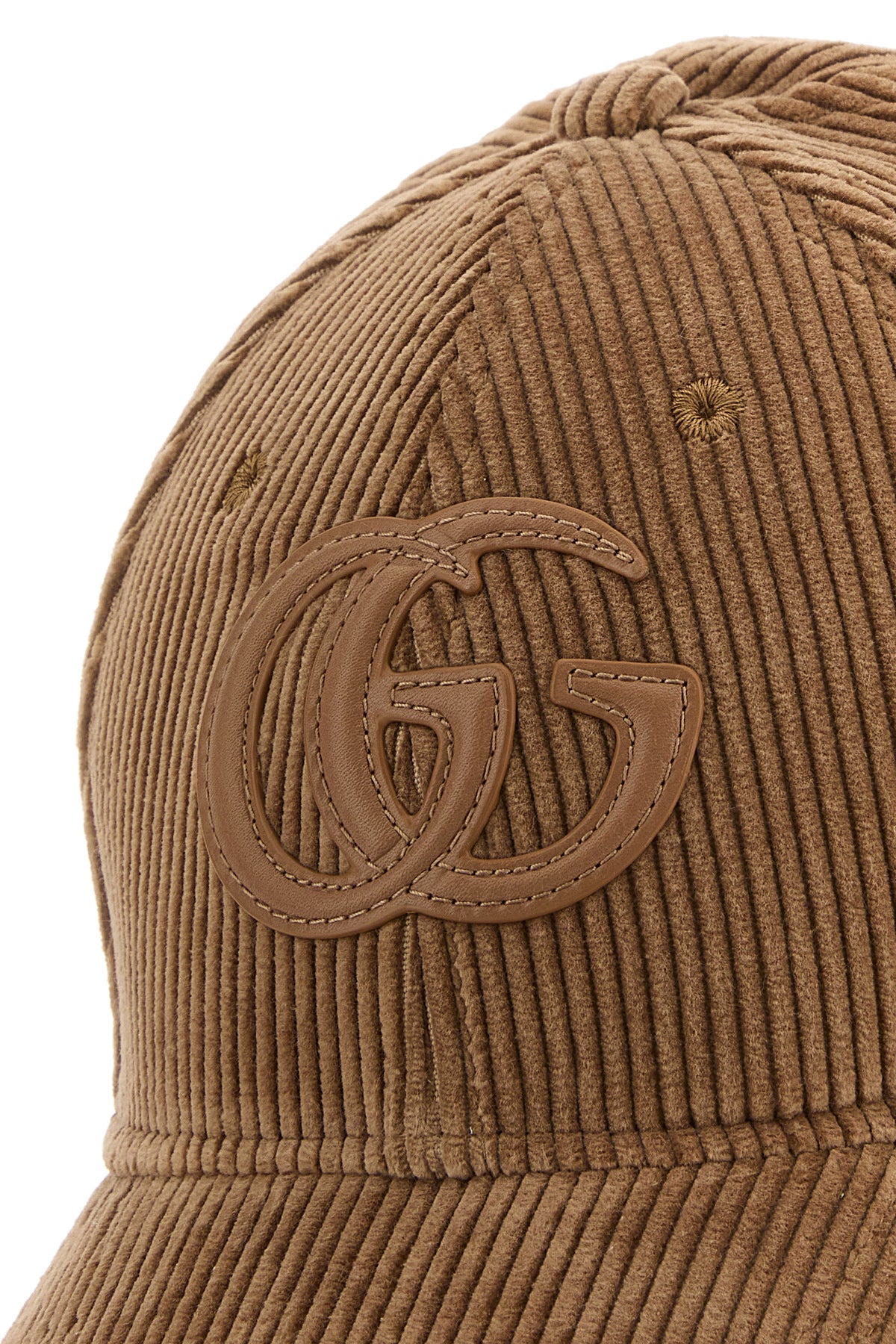 Cappello da baseball realizzato in velluto a coste di puro cotone arricchito da applicazione GG in pelle tonale sulla parte frontale.