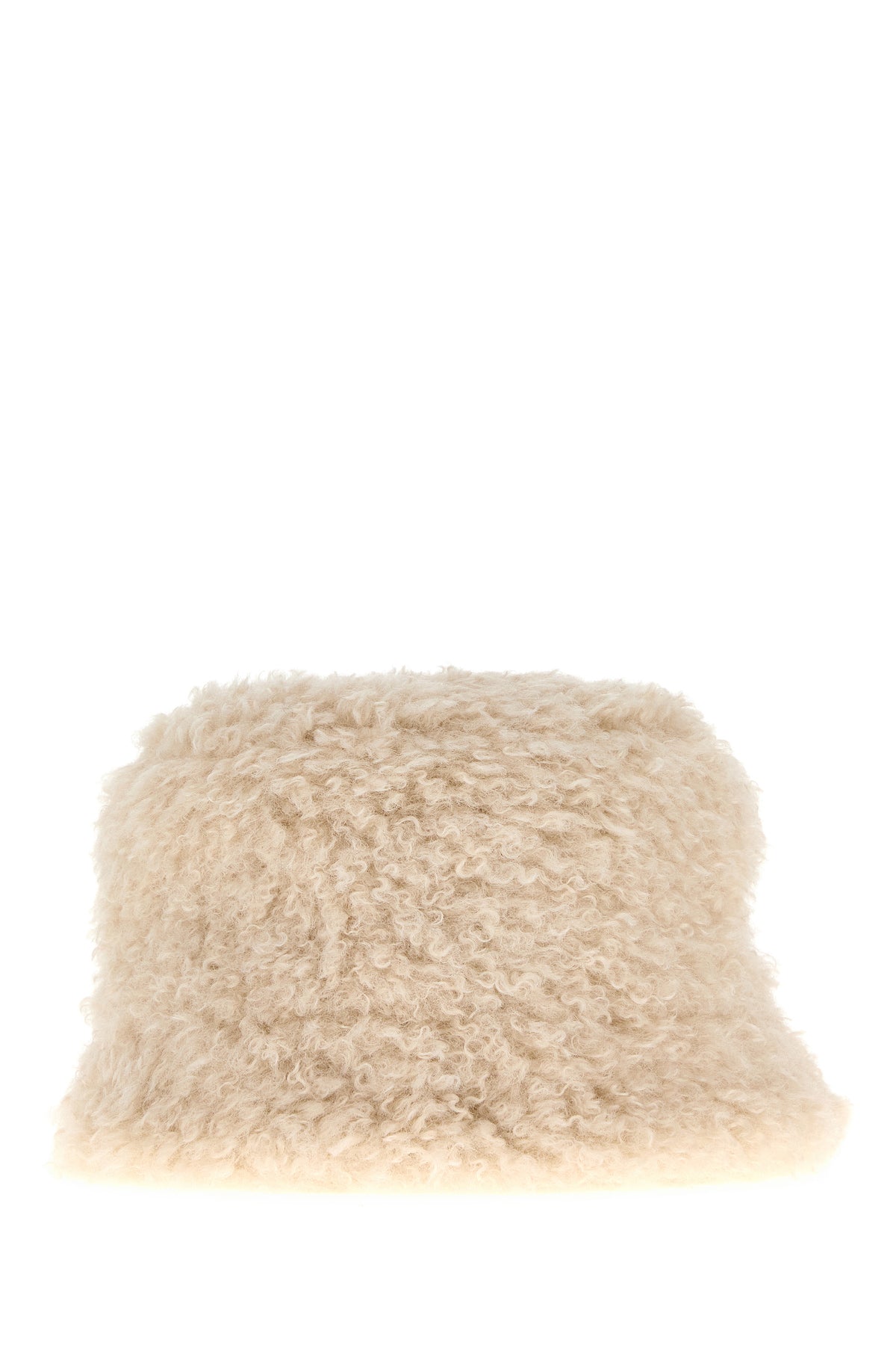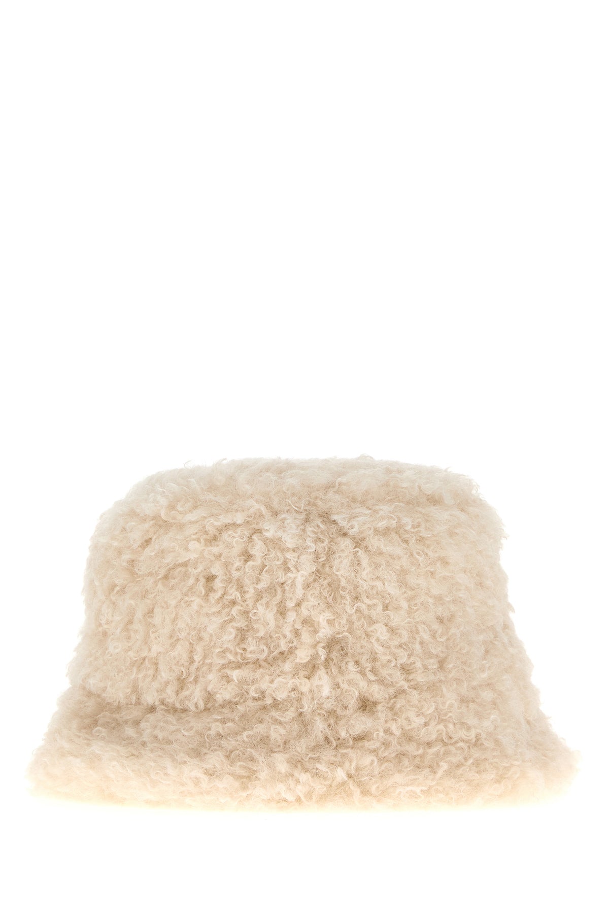 Cappello da pescatore realizzato in eco pelliccia arricchito da applicazione logata sulla parte frontale.