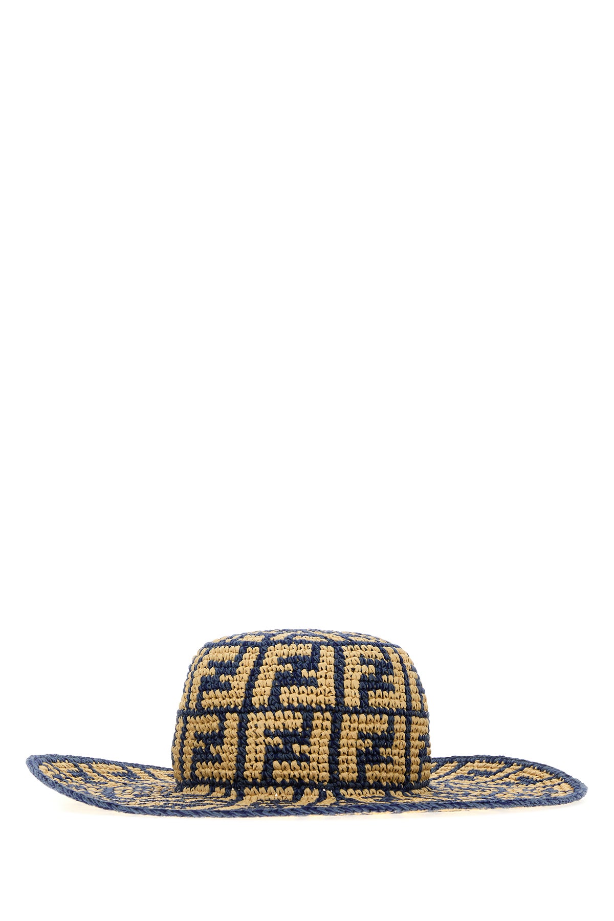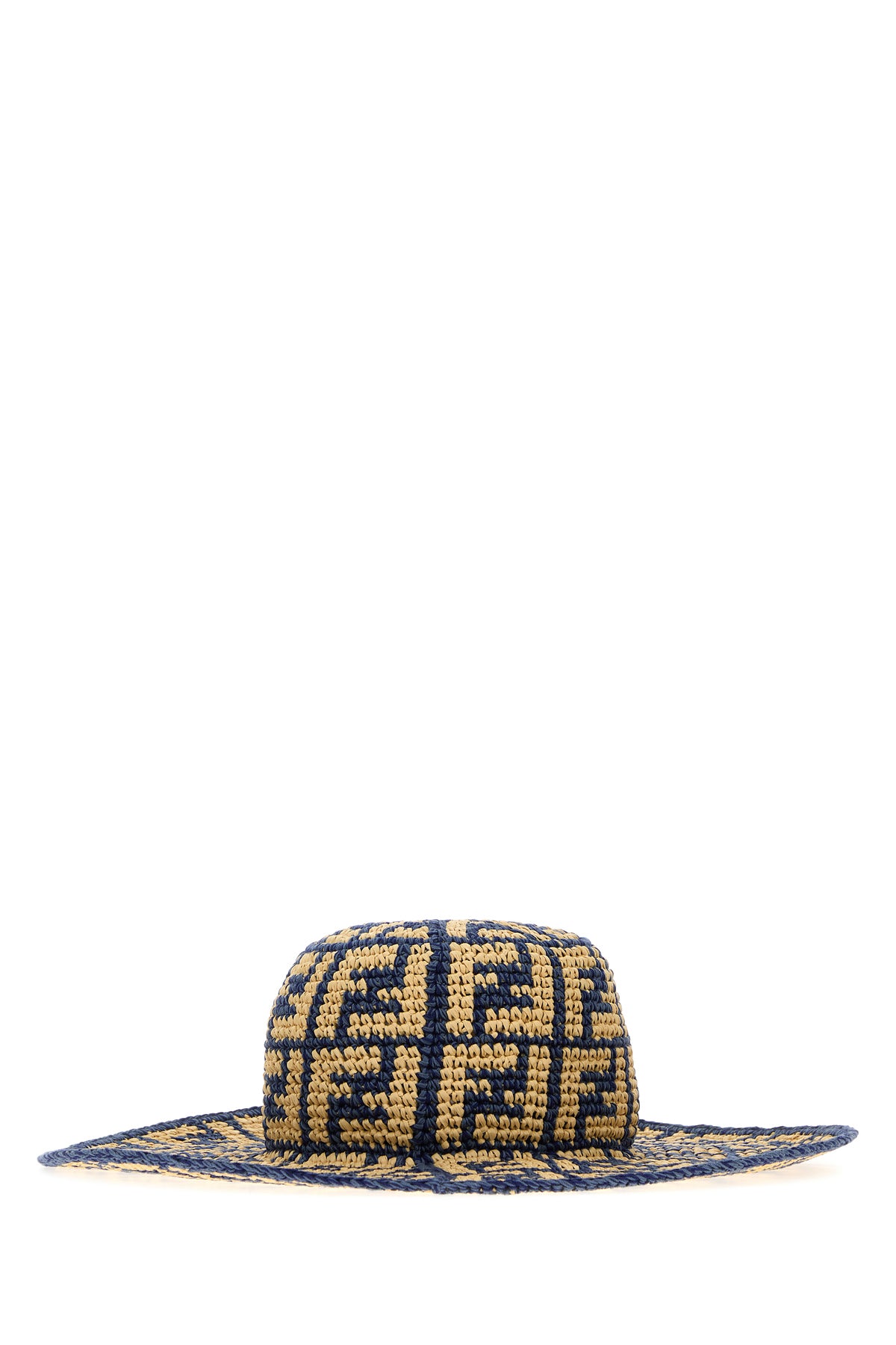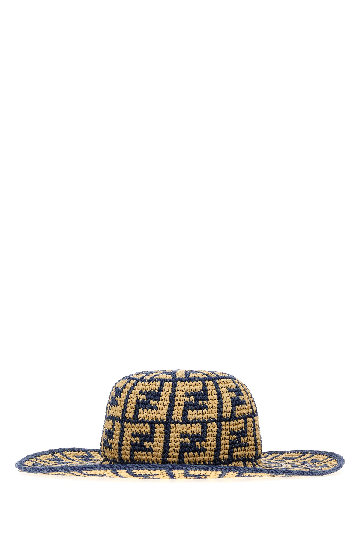 Cappello realizzato in misto cotone e rafia intrecciato caratterizzato da ricamo FF su tutta la superficie.