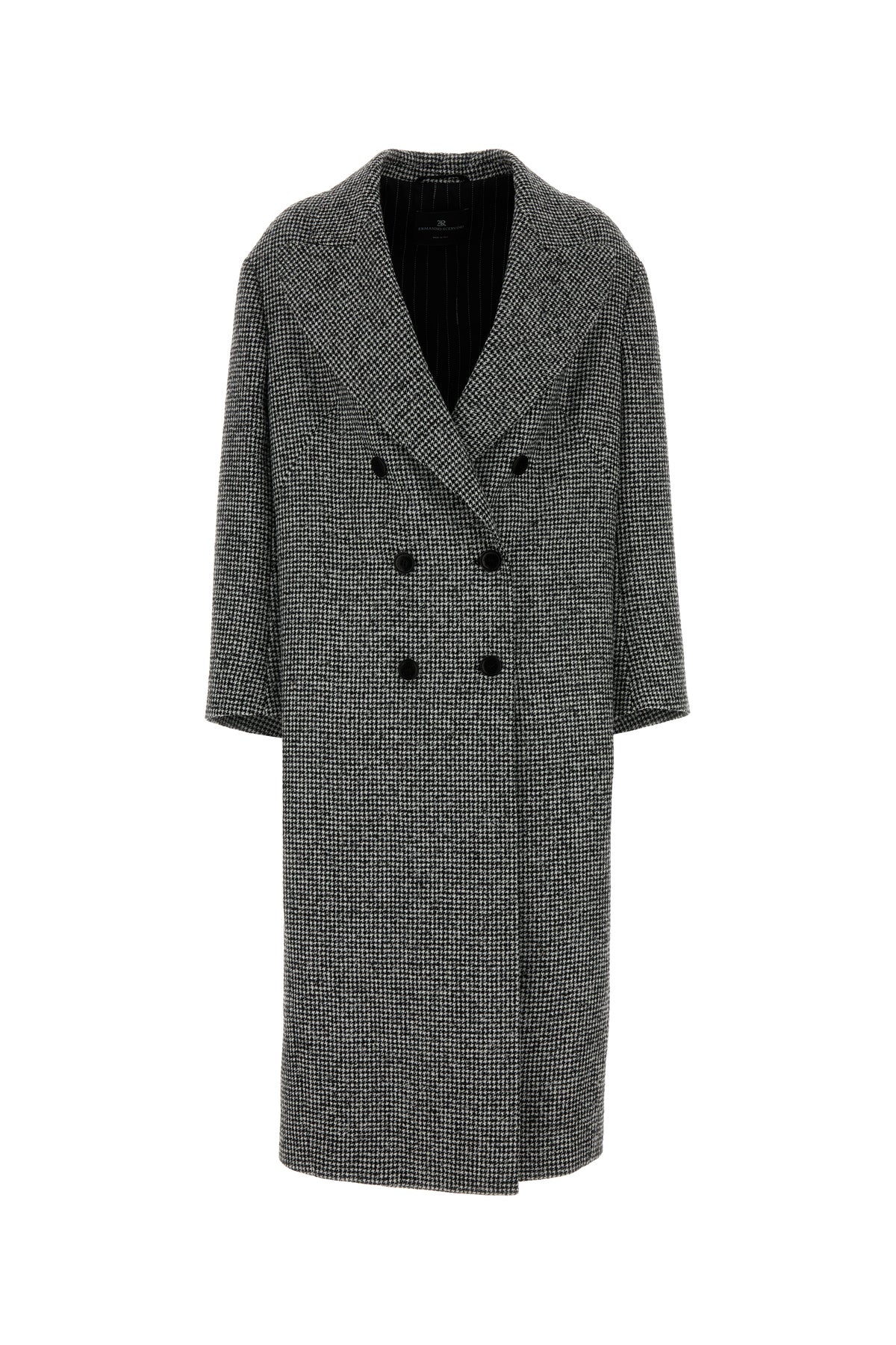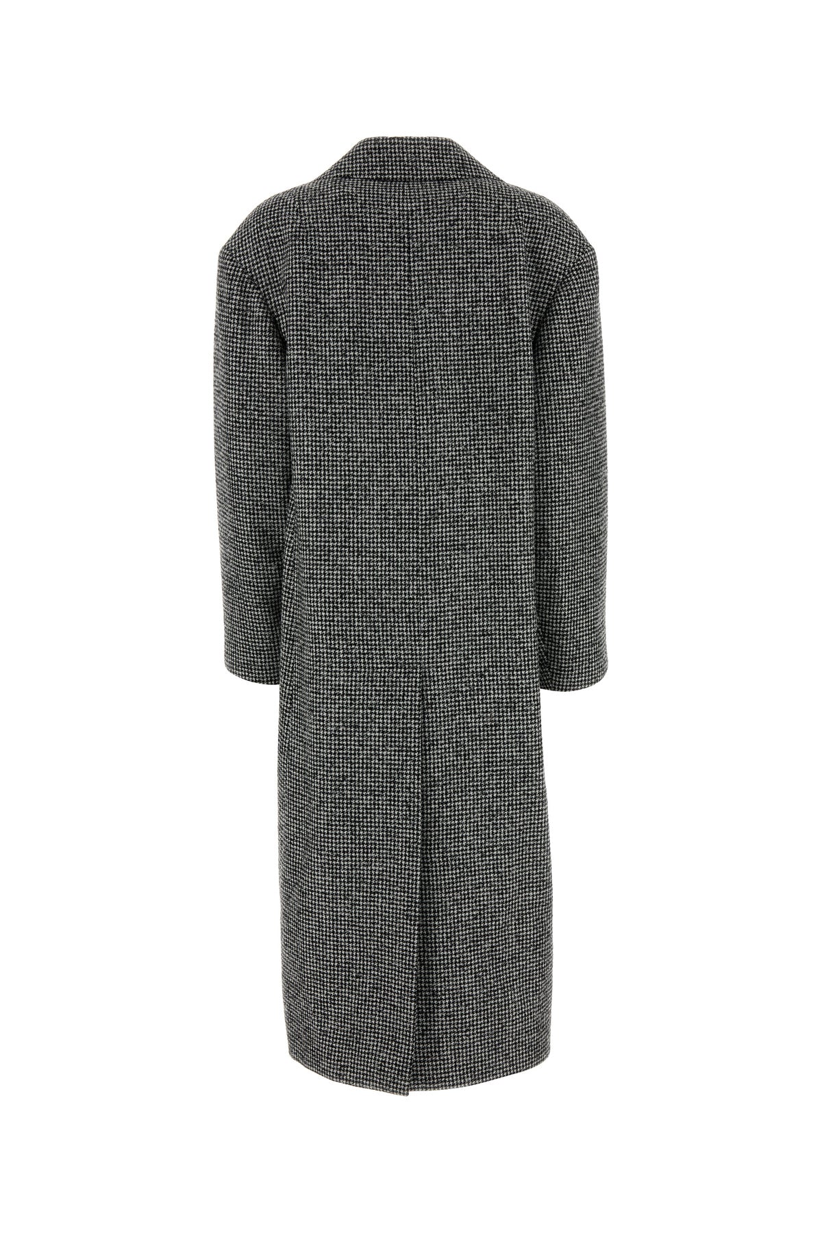 Cappotto realizzato in misto lana caratterizzato da ricamo a motivo pied de poule su tutta la superficie.
