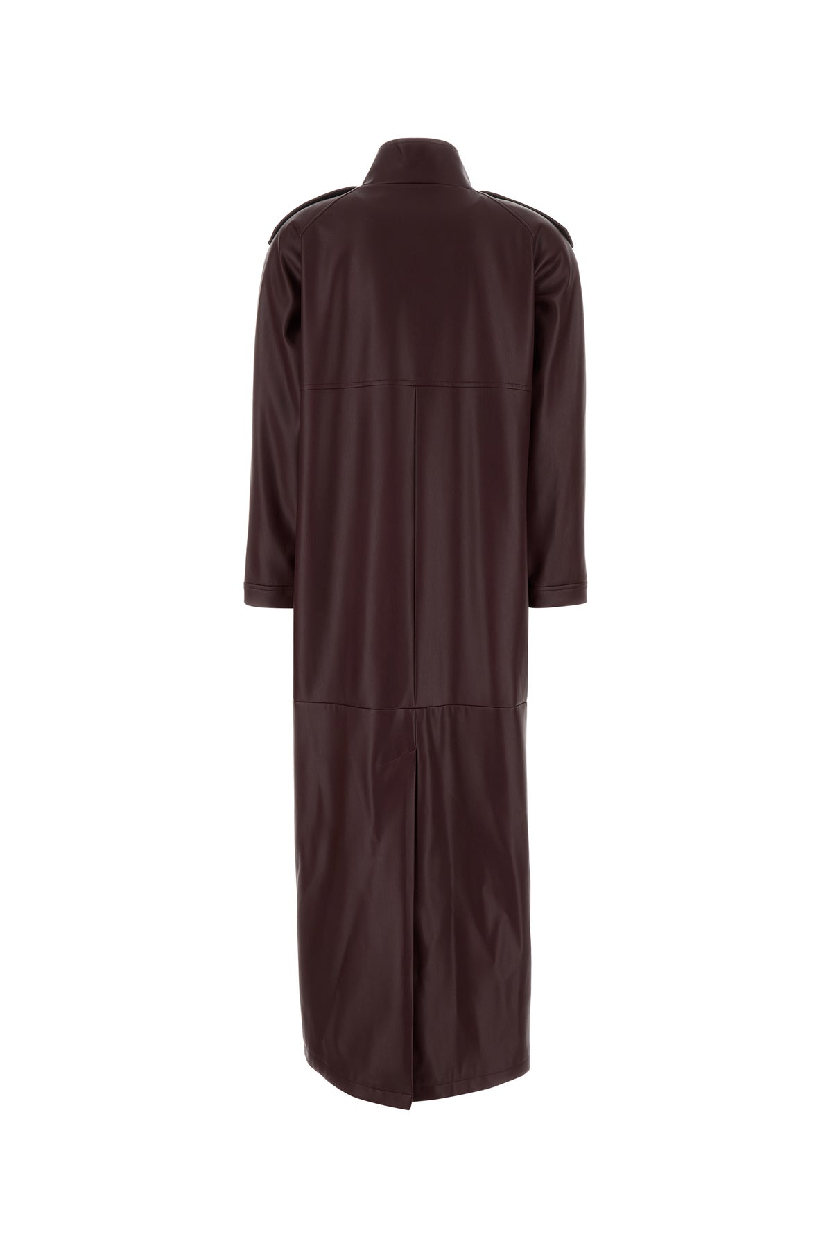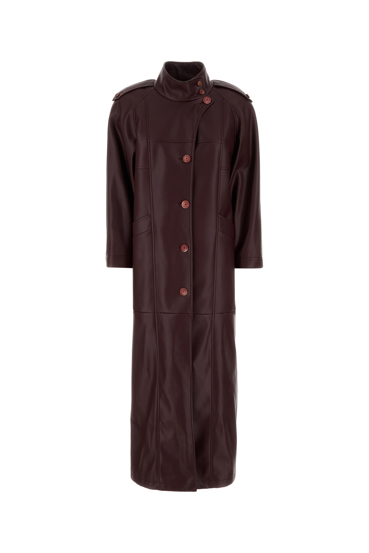 Cappotto realizzato in similpelle caratterizzato da chiusura mediante bottoni.