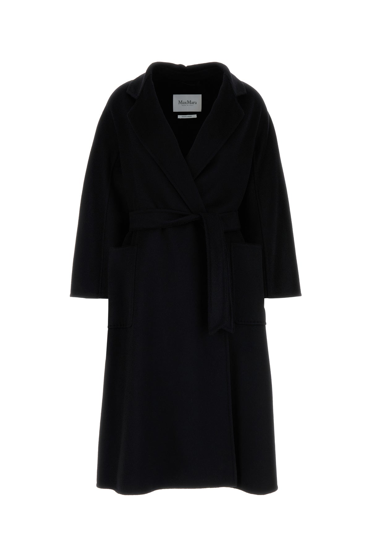 Cappotto realizzato in puro cashmere caratterizzato da chiusura mediante cintura da annodare in vita.