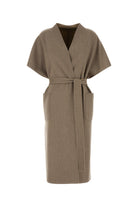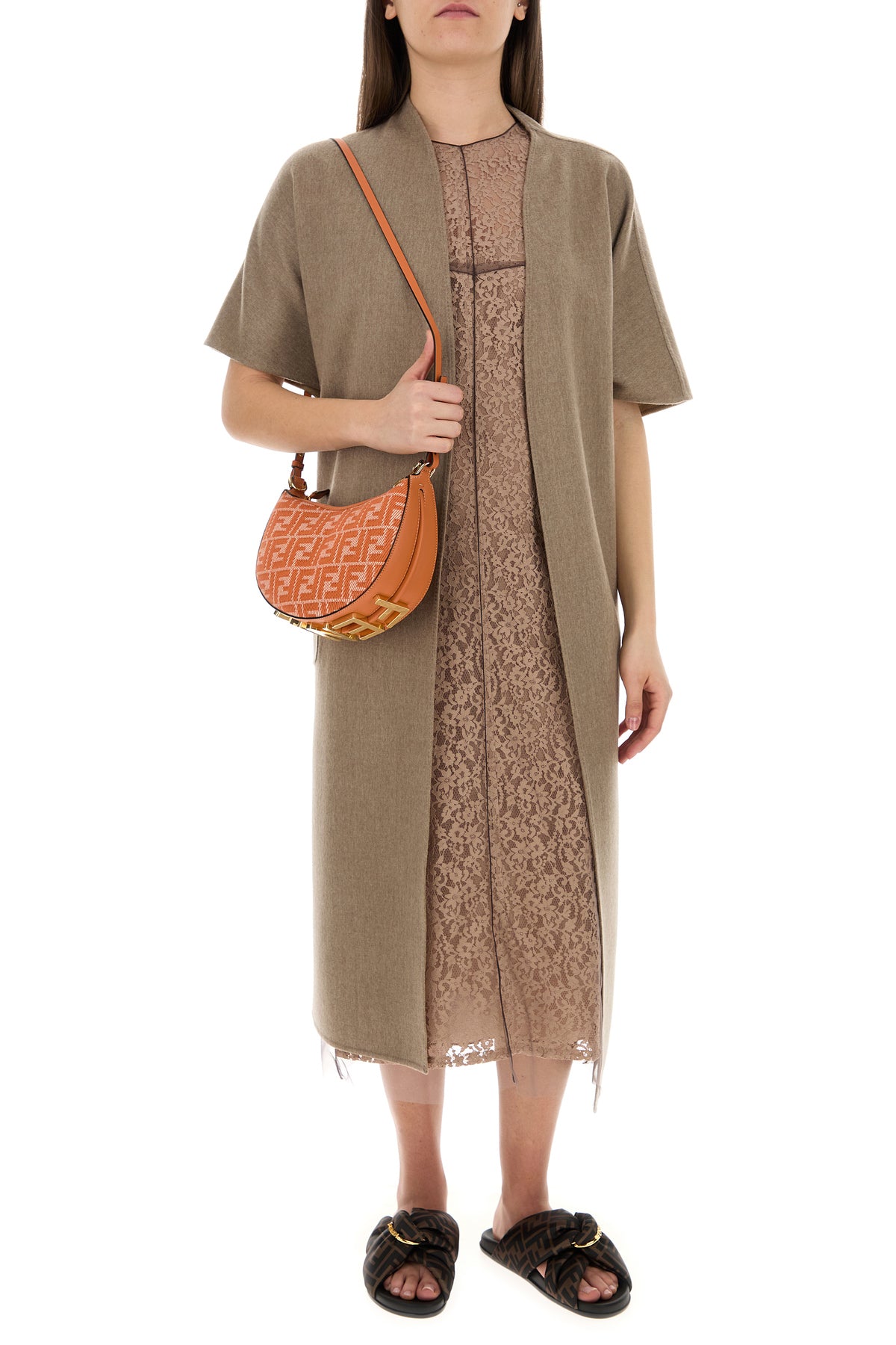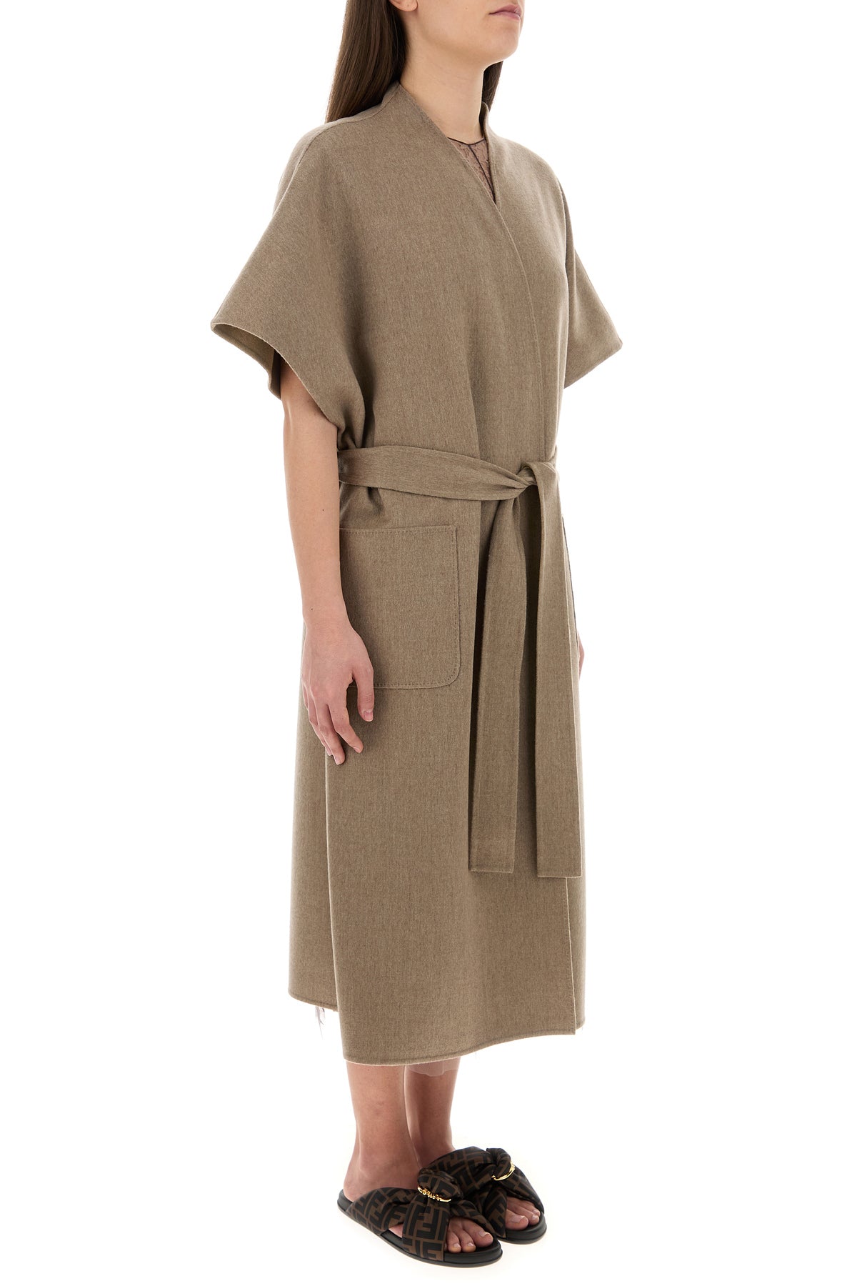 Cappotto reversibile a maniche corte realizzato in cashmere stretch caratterizzato da logo ricamato tonale sul lato.