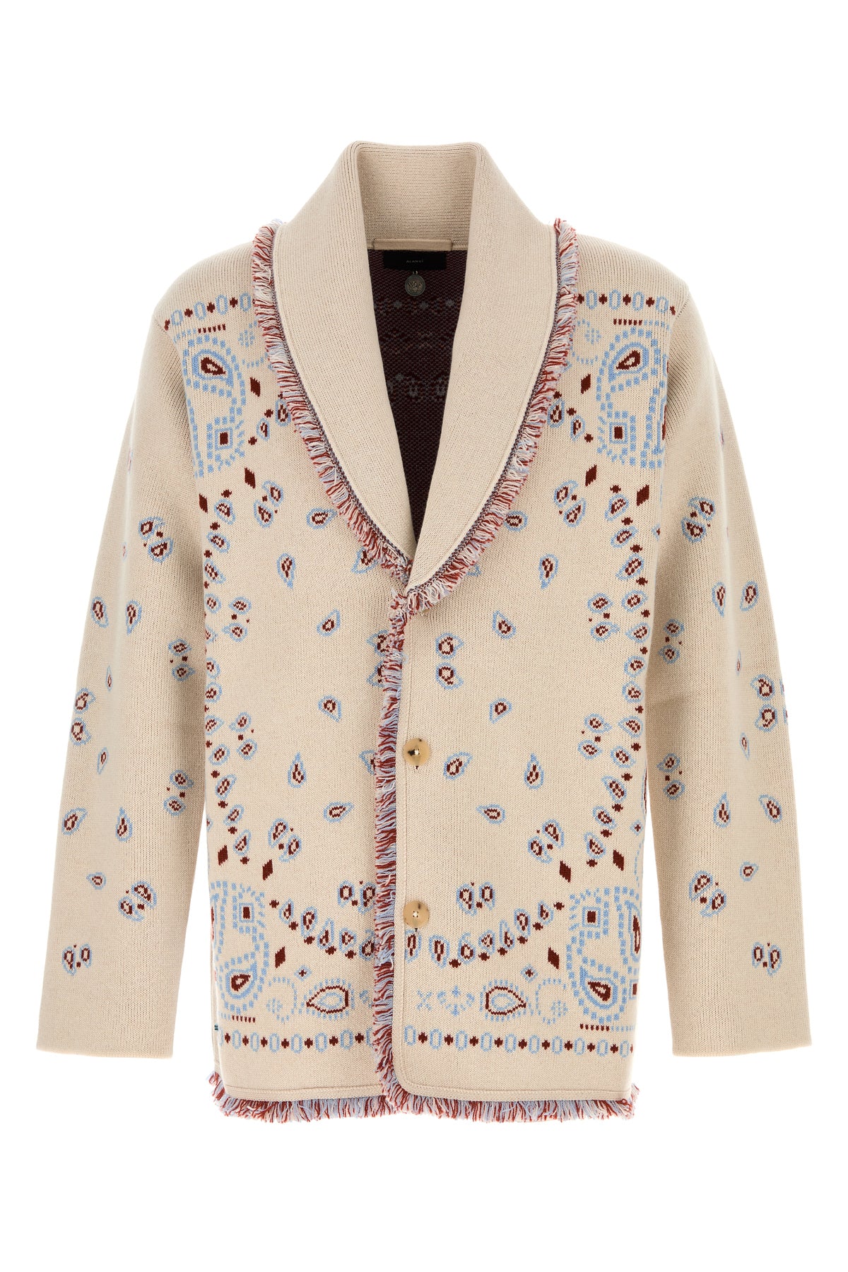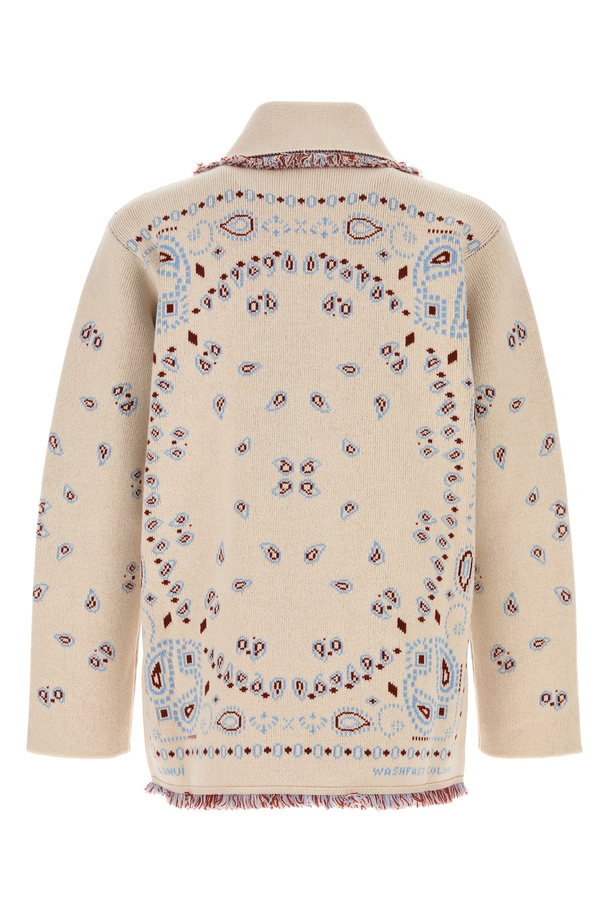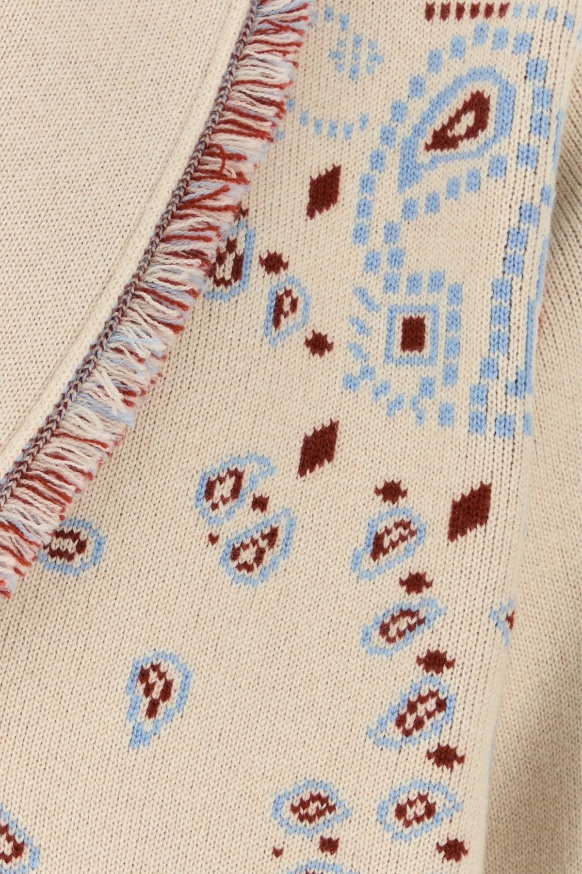 Cardigan realizzato in puro cashmere con profilature sfrangiate caratterizzato da particolare ricamo su tutta la superficie.