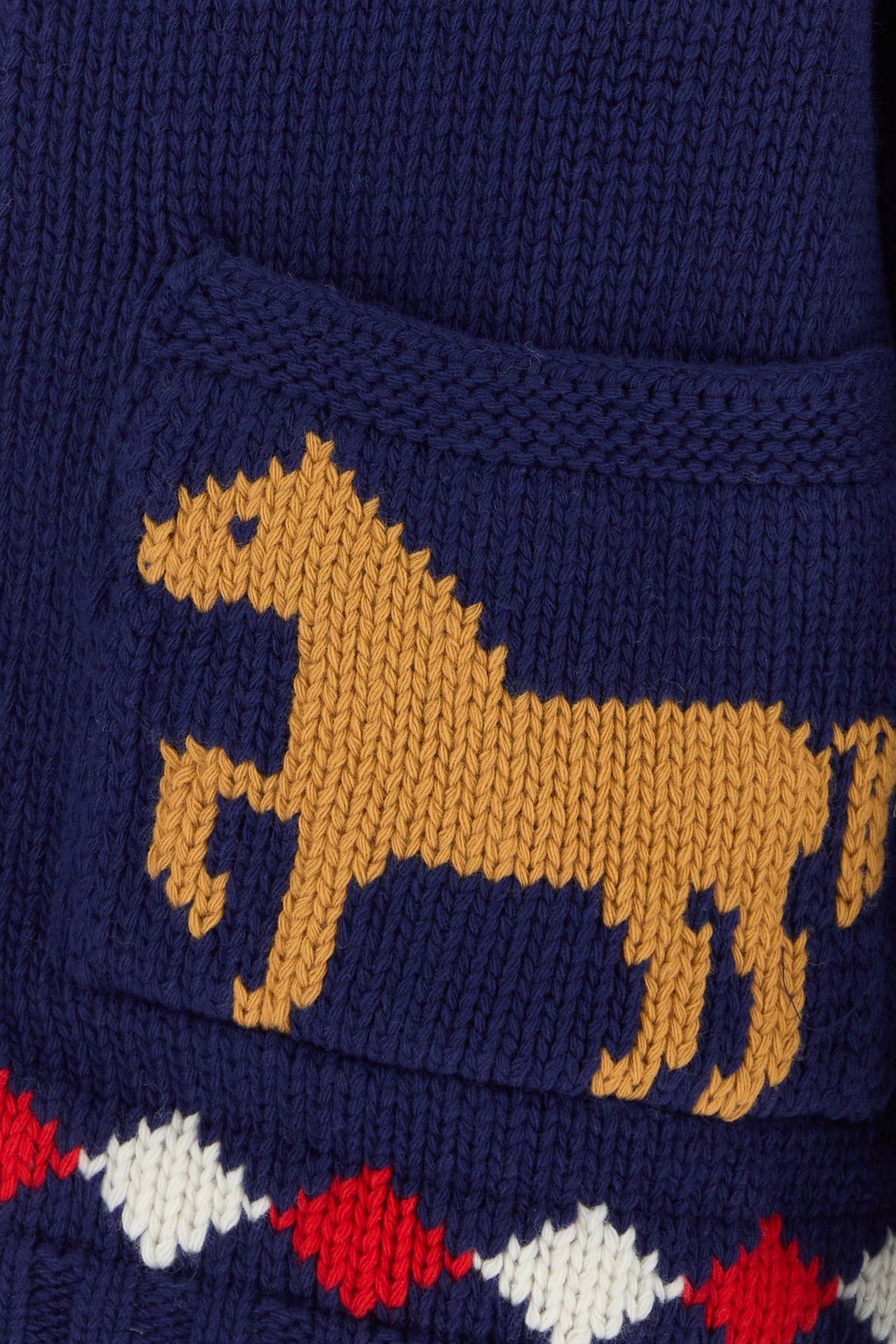 Cardigan realizzato in pura lana merino caratterizzato da particolari ricami su tutta la superficie.