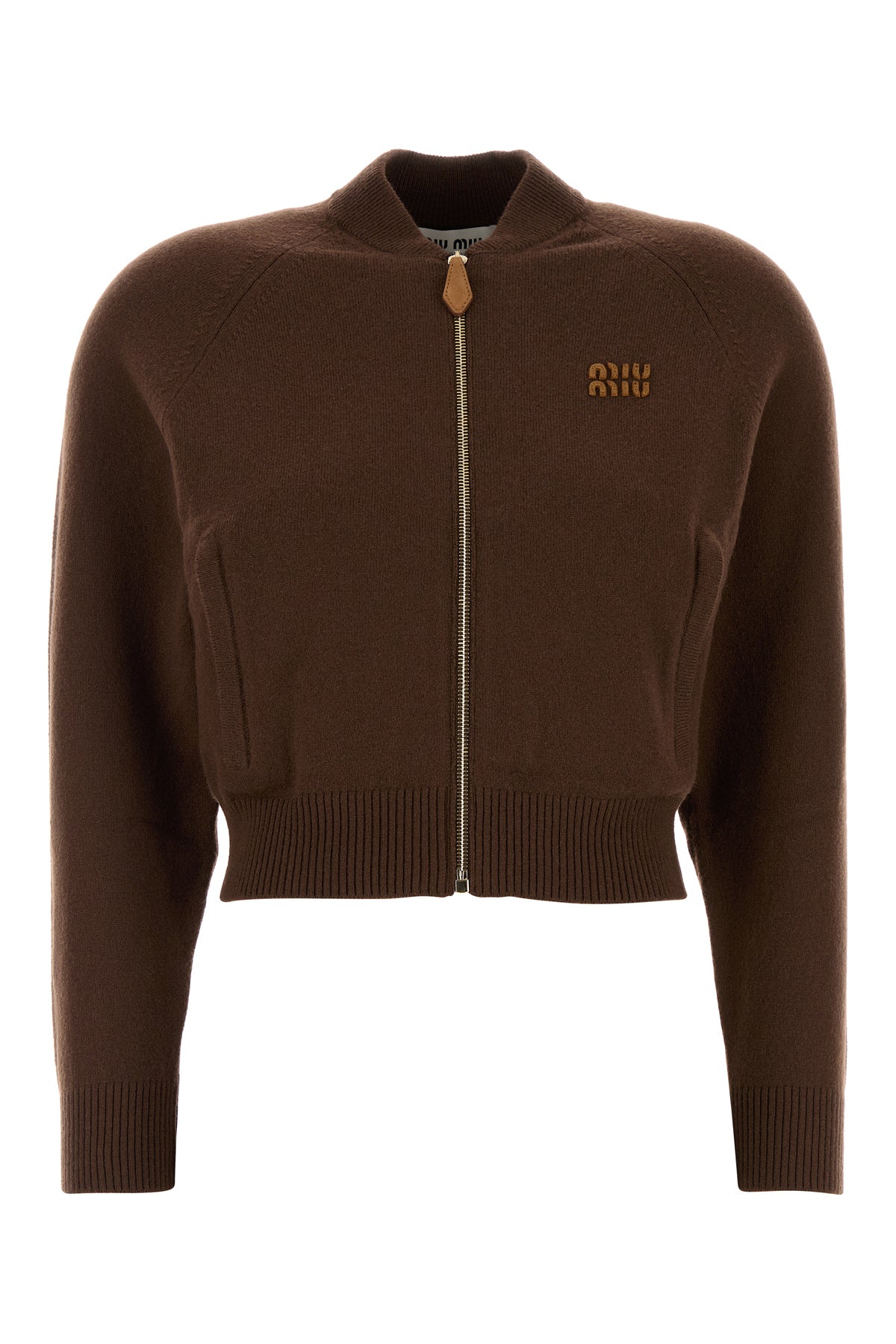 Cardigan realizzato in misto cashmere stretch arricchito da applicazione logata a contrasto sul petto.