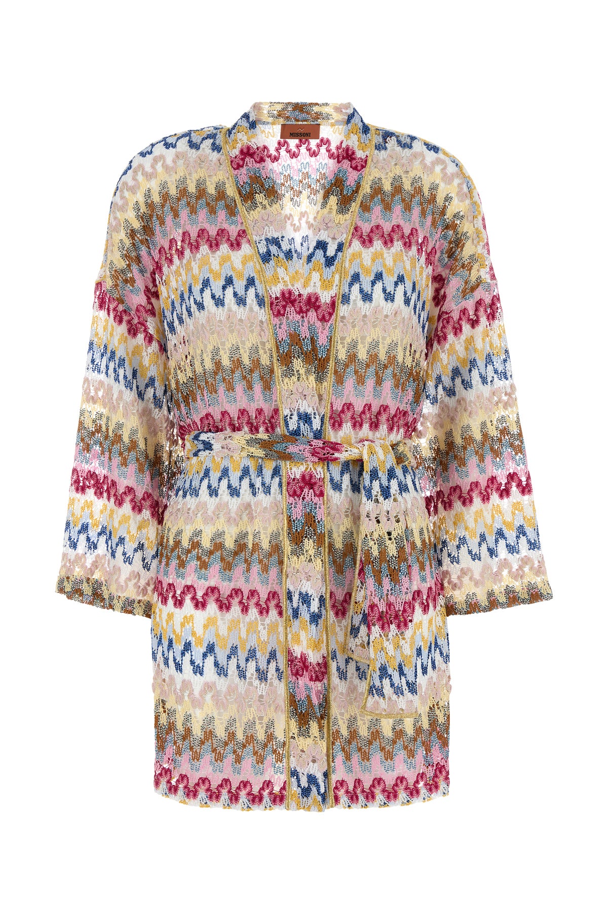 Cardigan realizzato in misto viscosa con fili in lurex caratterizzato da particolare ricamo su tutta la superficie.