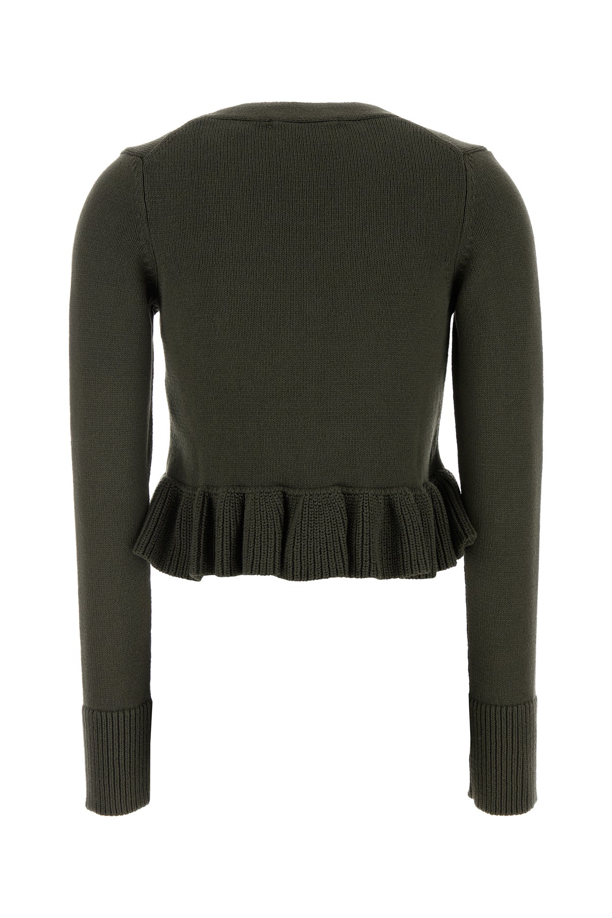 Cardigan realizzato in cotone e seta caratterizzato da volant sul fondo.