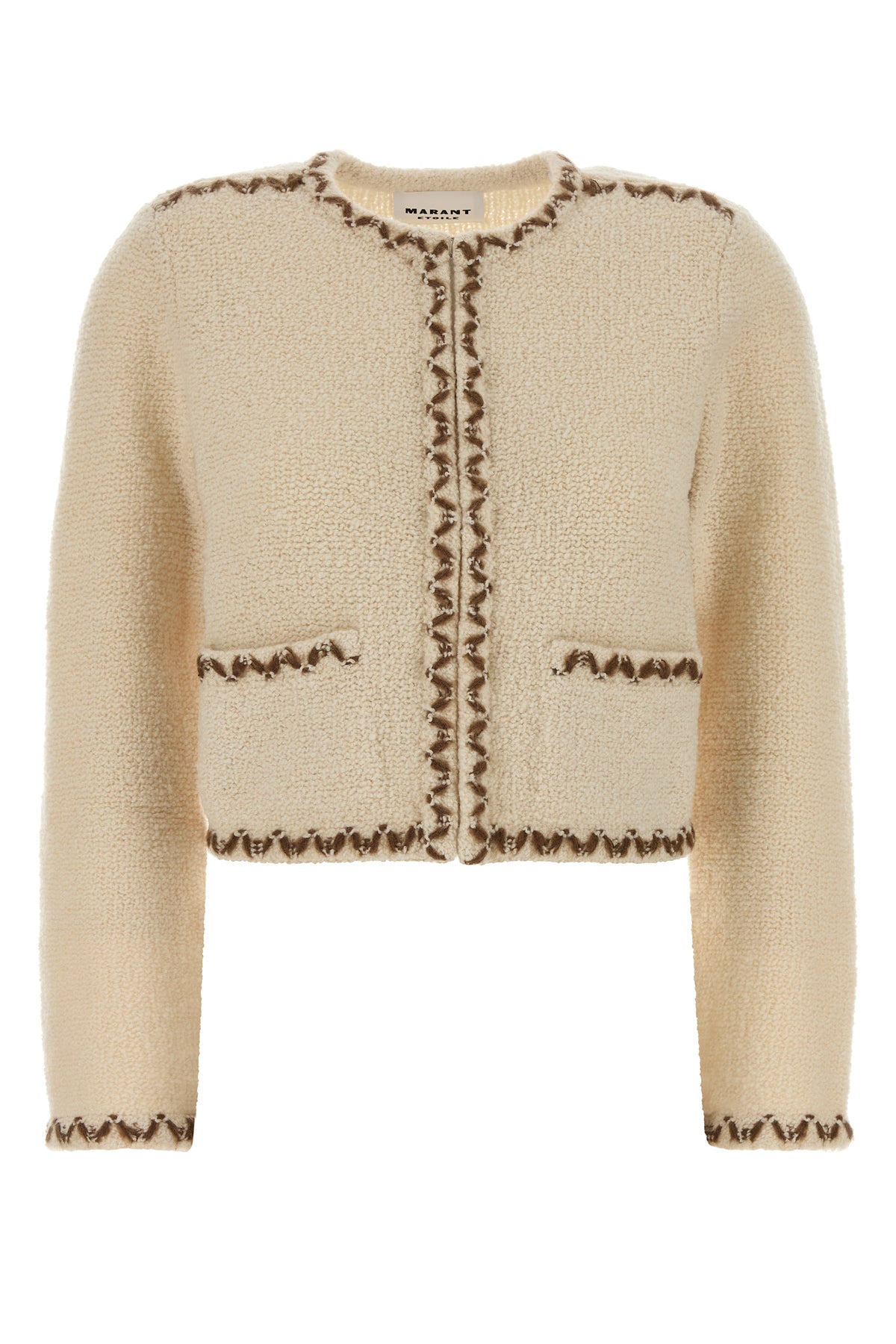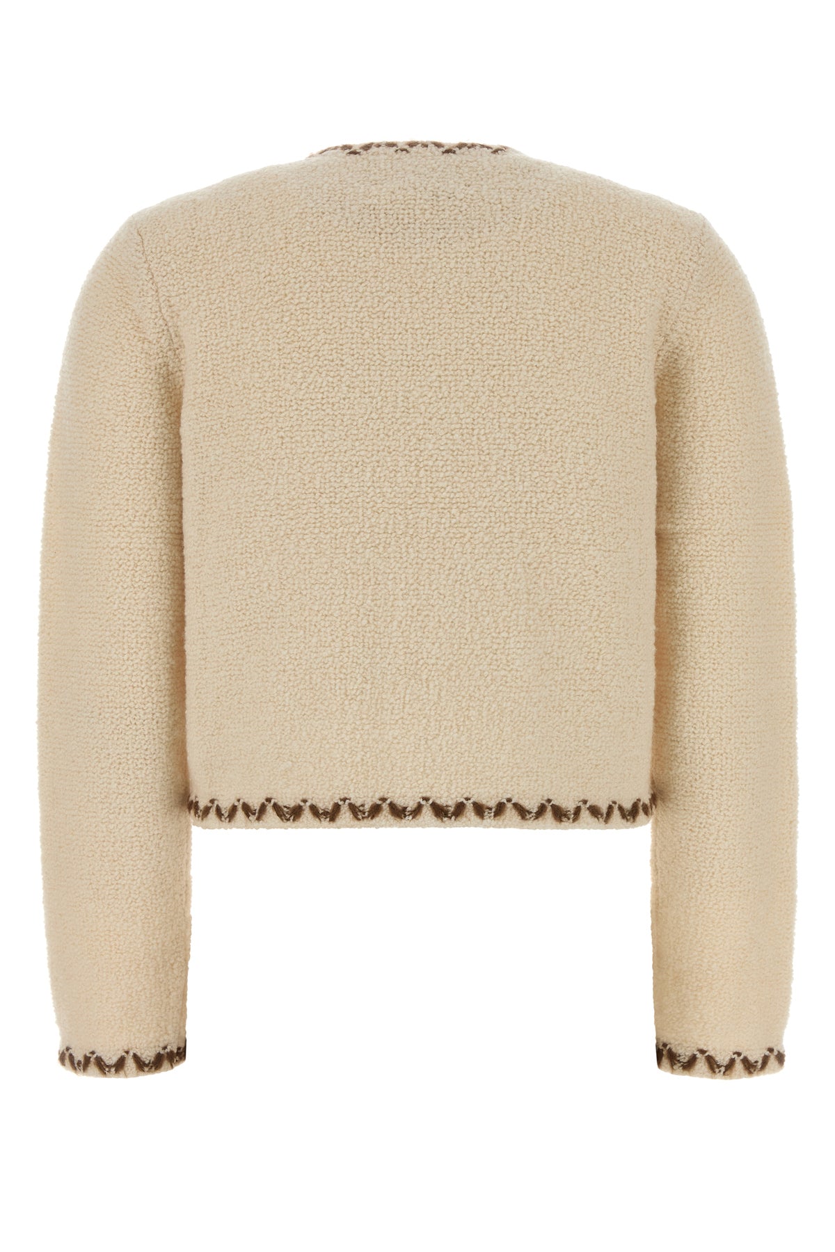 Cardigan realizzato in misto lana caratterizzato da cuciture a contrasto sulla parte frontale.