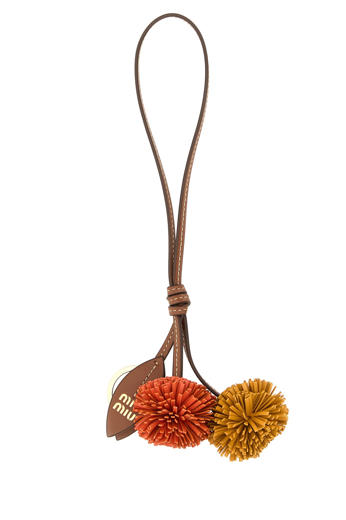 Charm a forma di fiore realizzato in pelle liscia caratterizzato da logo stampato laminato.