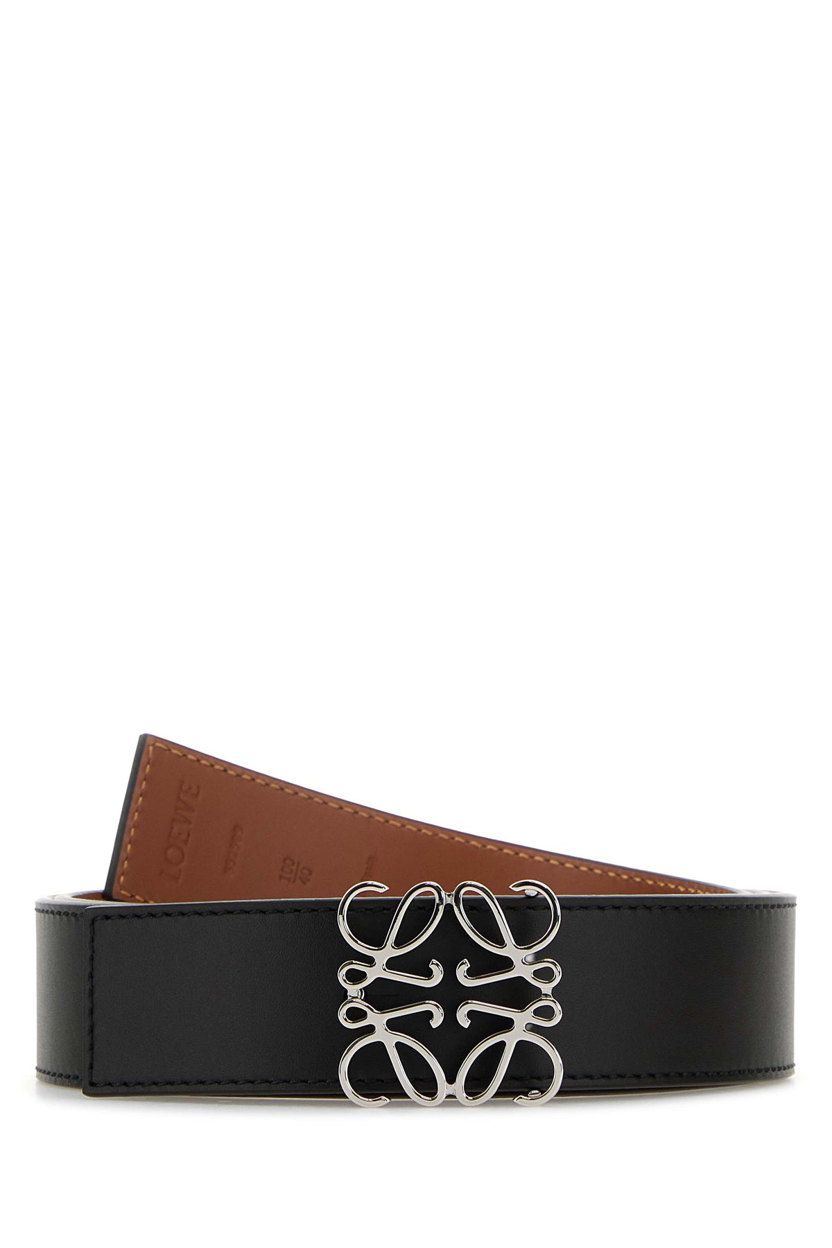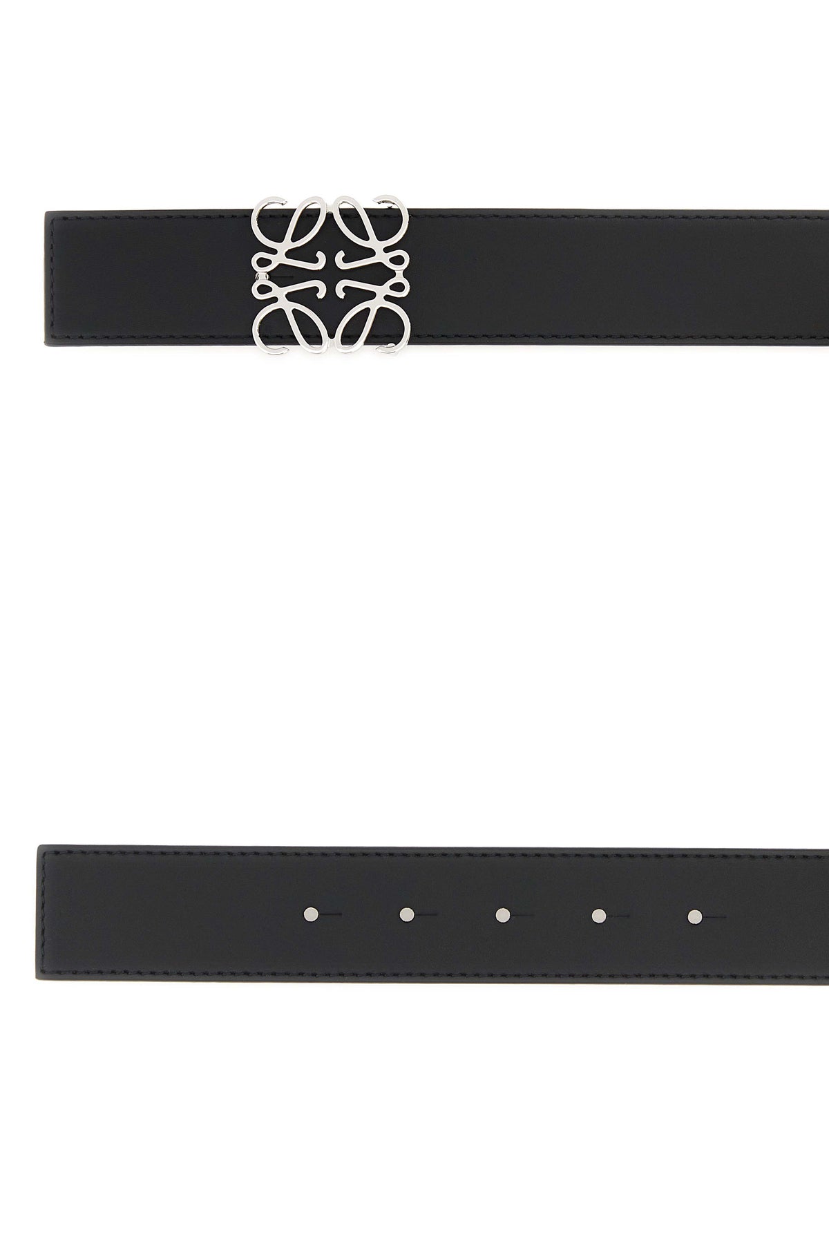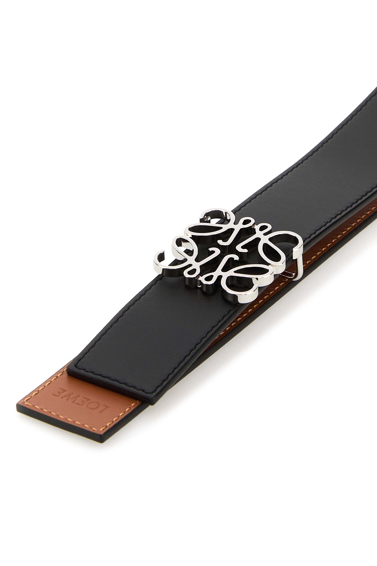 Cintura reversibile realizzata in pelle di vitello liscia arricchita da dettaglio metallico Anagram sulla parte frontale.