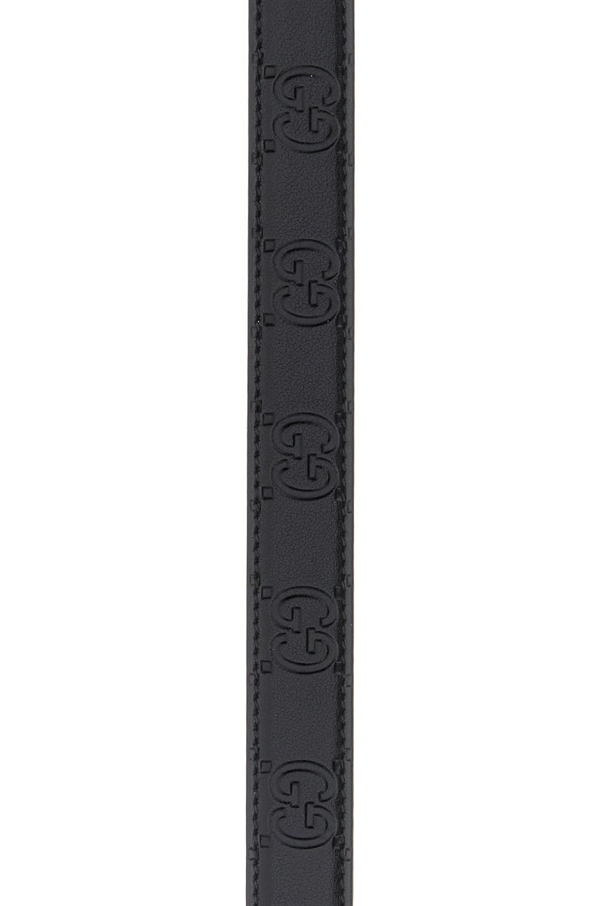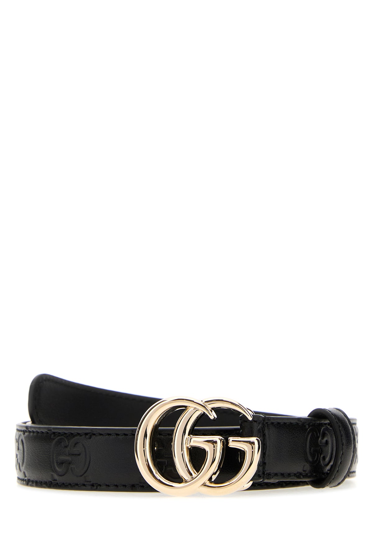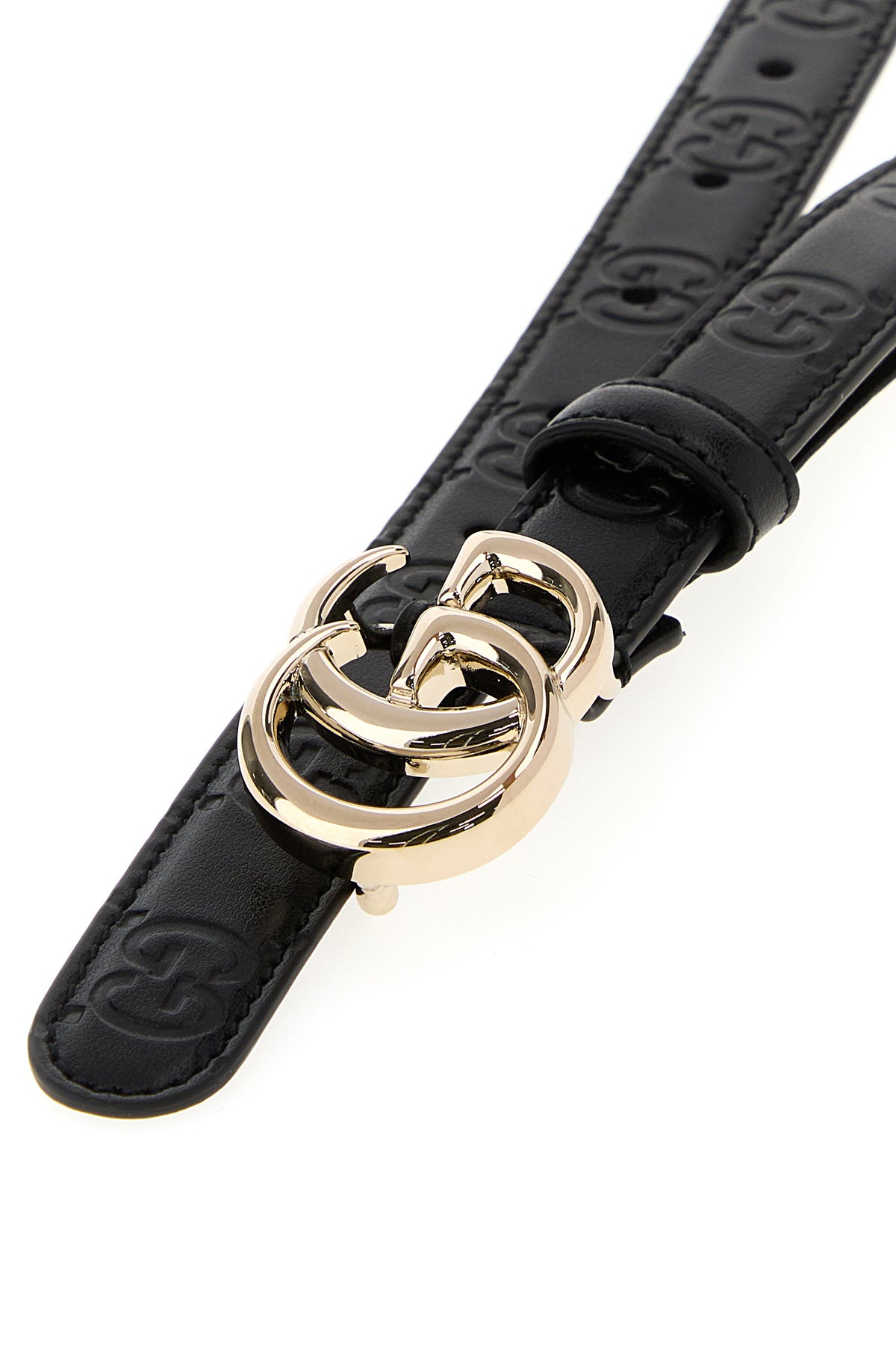 Cintura realizzata in pelle caratterizzata da motivo GG impresso su tutta la superficie arricchita da fibbia metallica GG.
