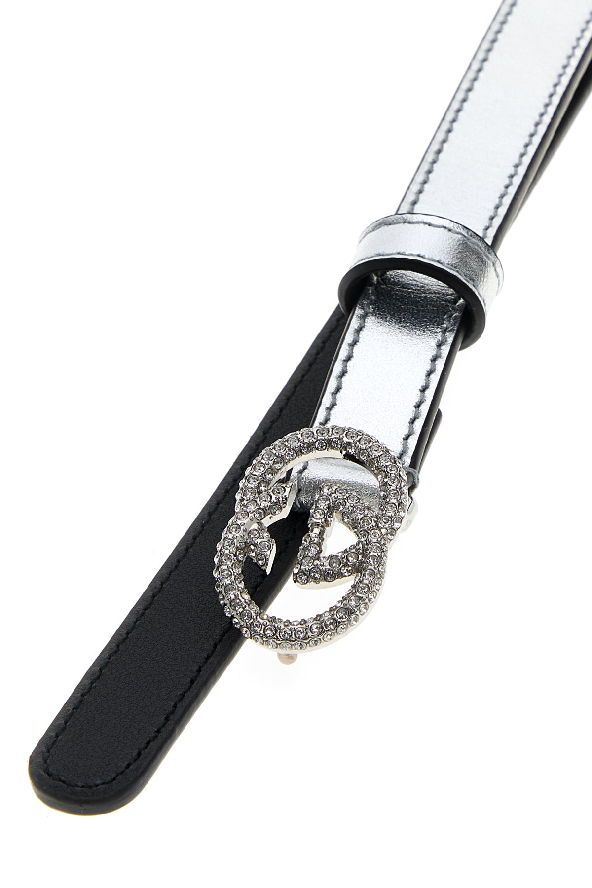 Cintura realizzata in nappa laminata arricchita da fibbia GG con cristalli.